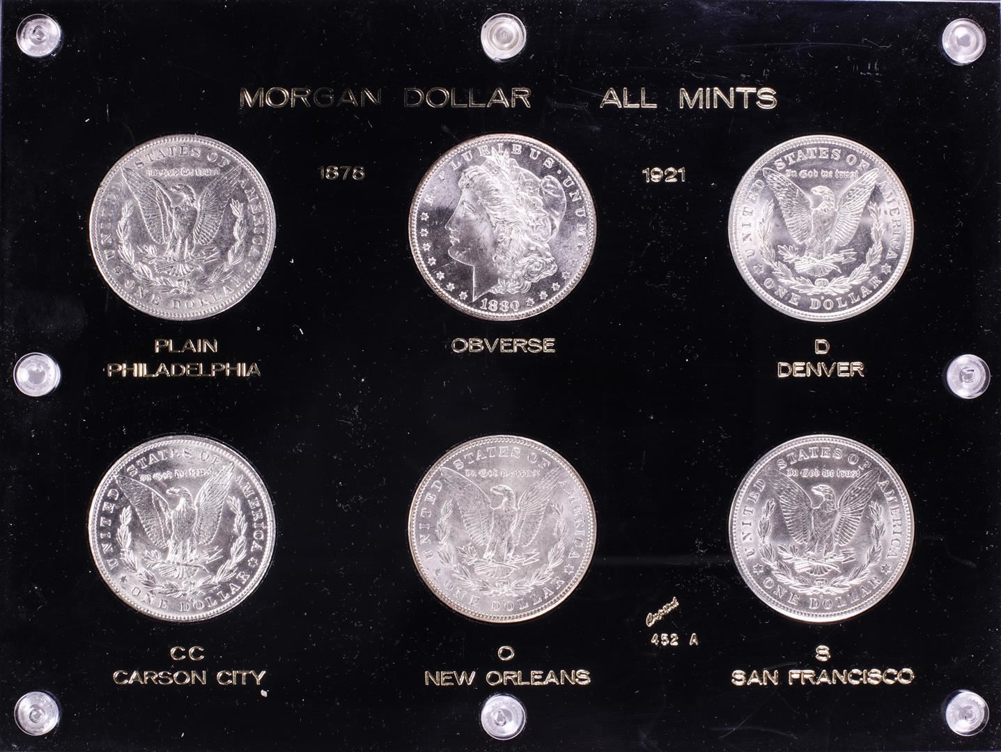 One Lot of (6) $1 Morgan Silver Dollar Coins All Mints in Holder.