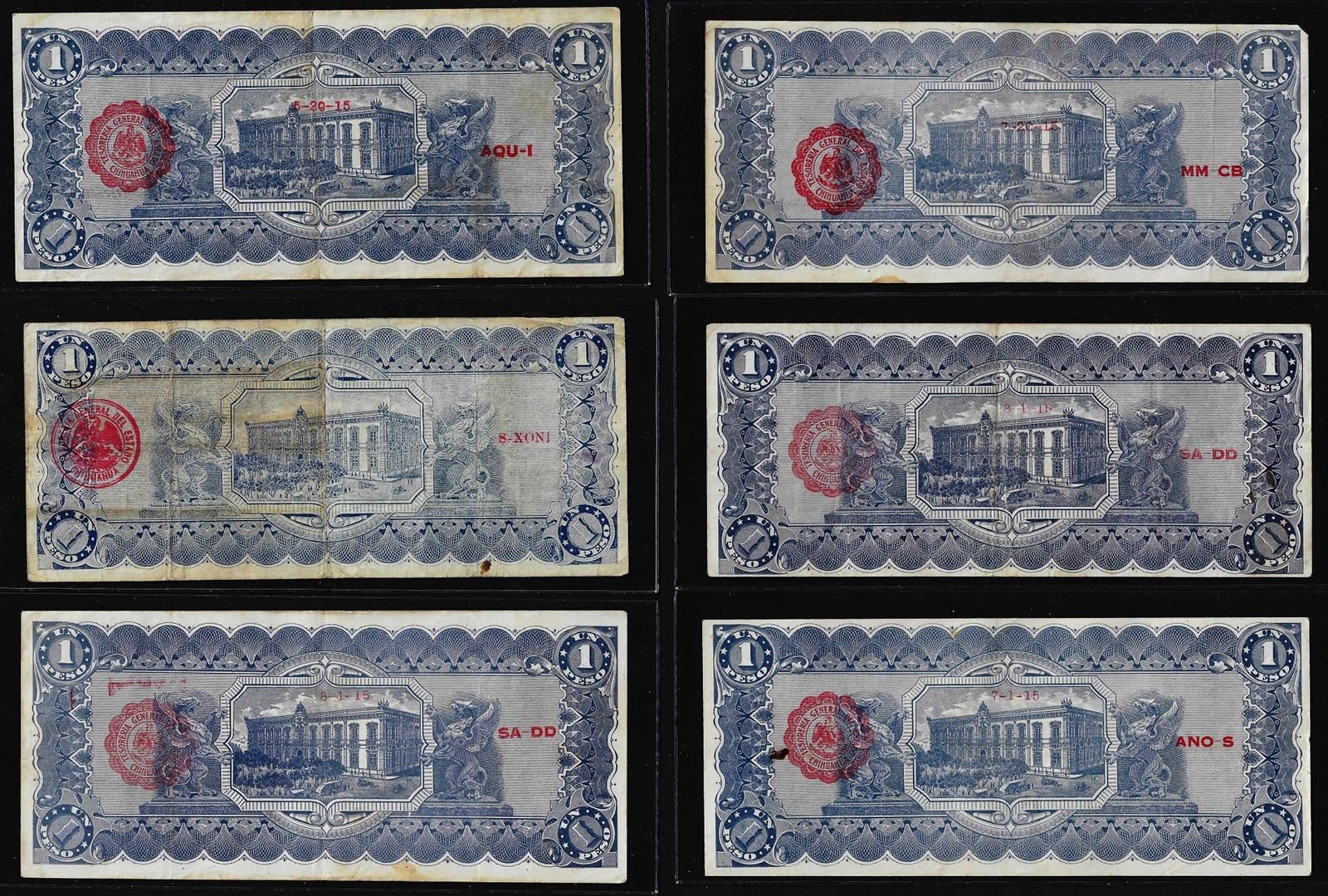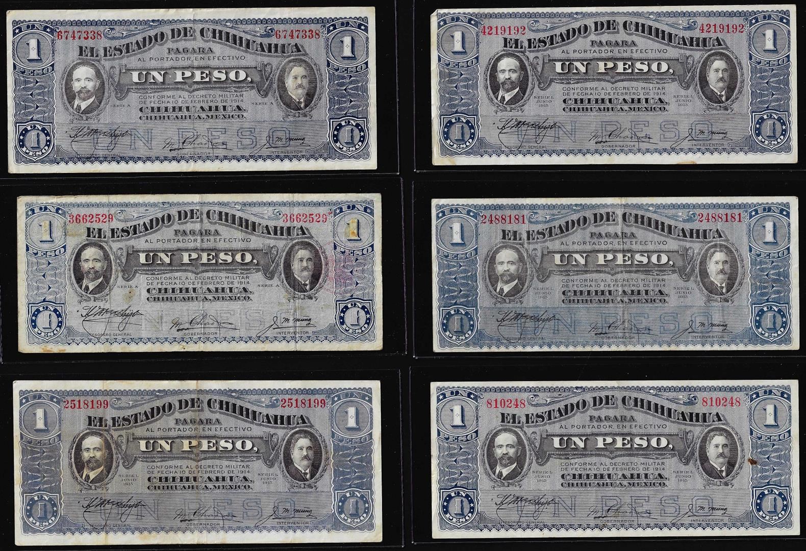 Lot of (6) 1915 1 Peso Mexico Revolutionary State of Chihuahua Notes