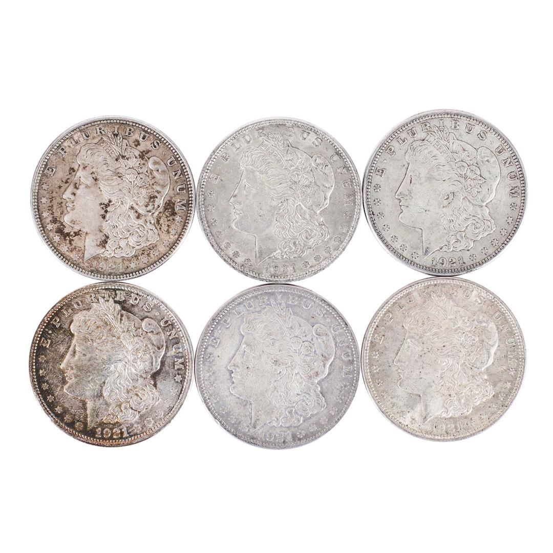 One Lot of (6) 1921 $1 Morgan Silver Dollar Coins.