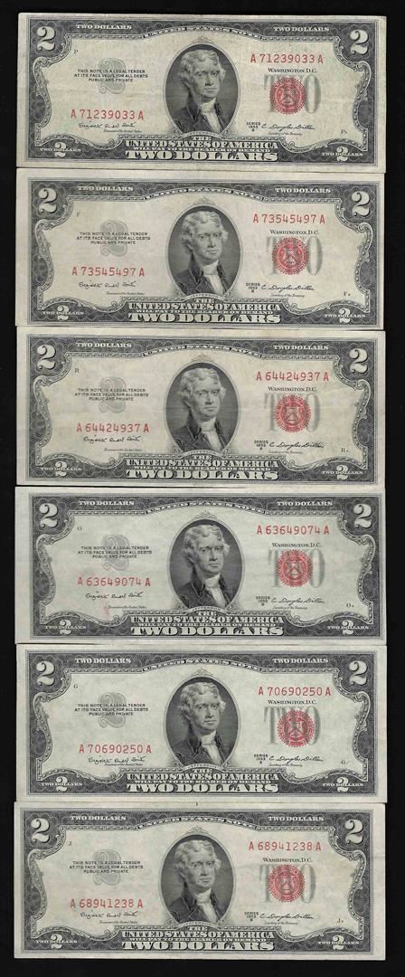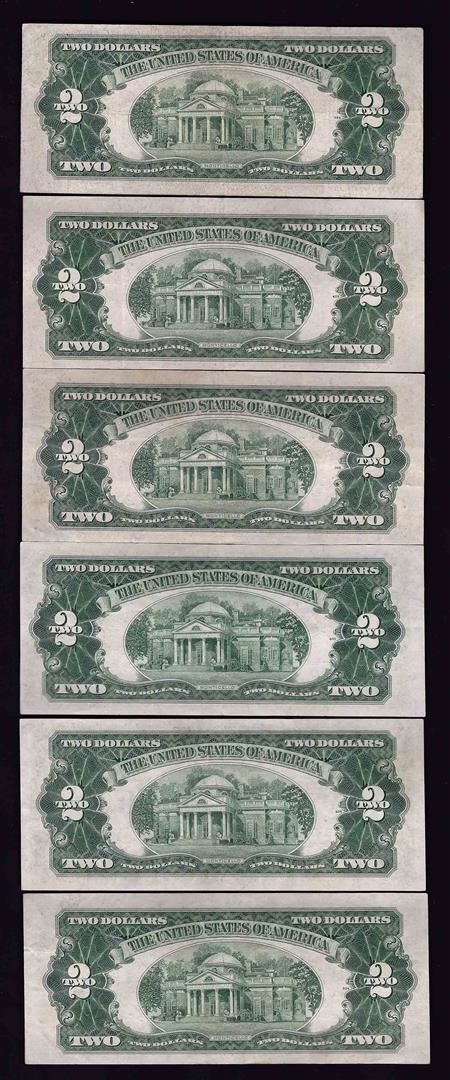 One Lot of (6) 1953B $2 Legal Tender Notes.