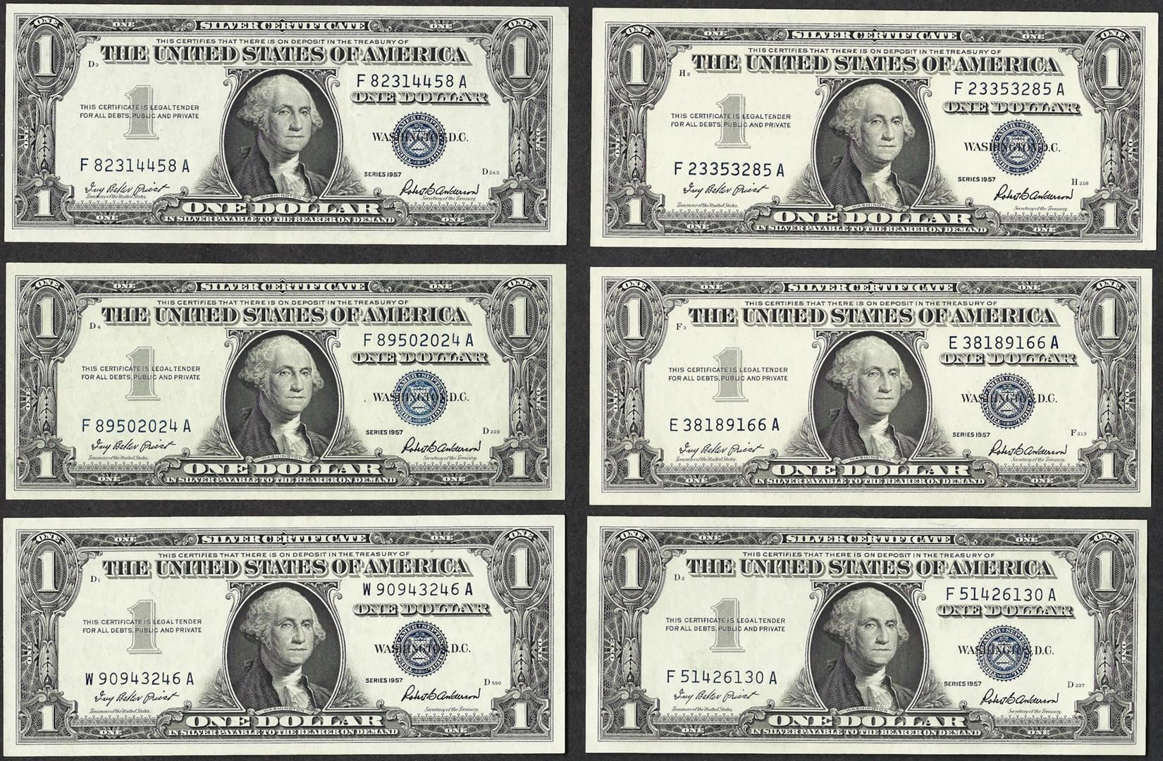 One Lot of (6) 1957 $1 Silver Certificate Notes.