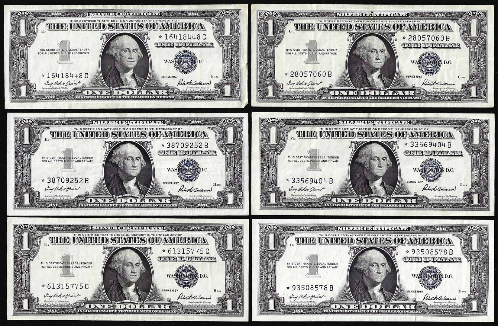 Lot of (6) 1957 $1 Silver Certificate Star Notes