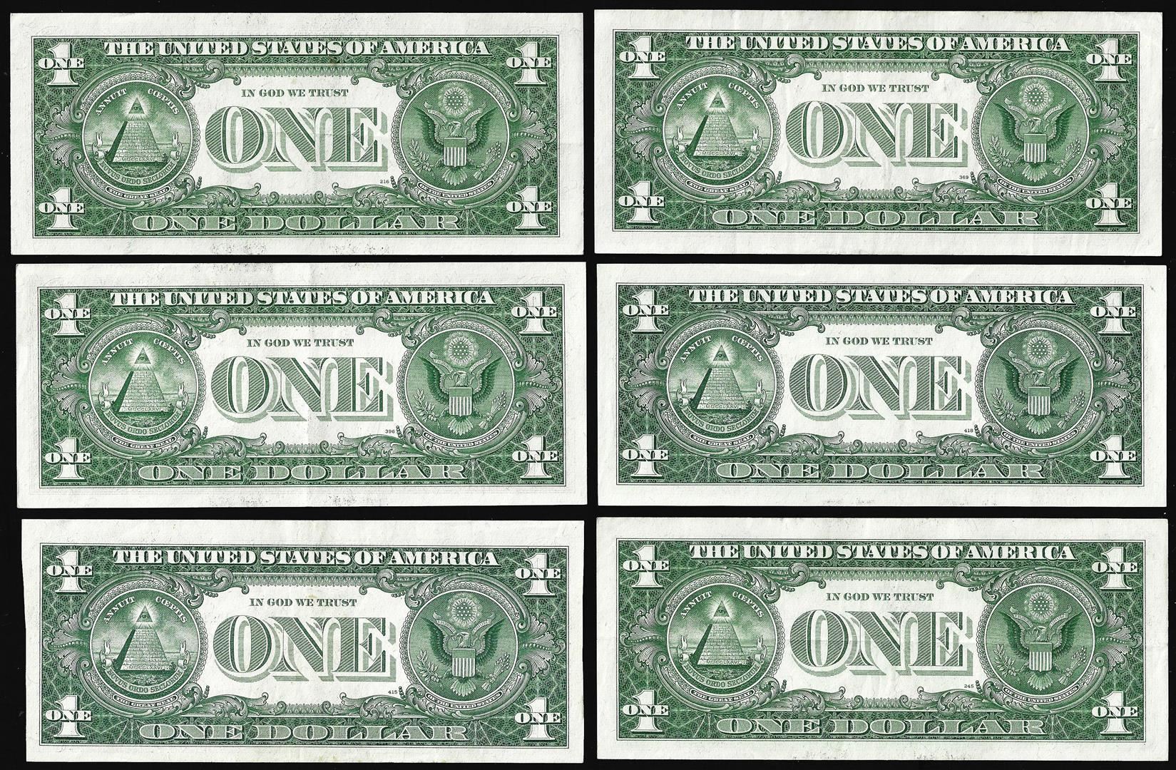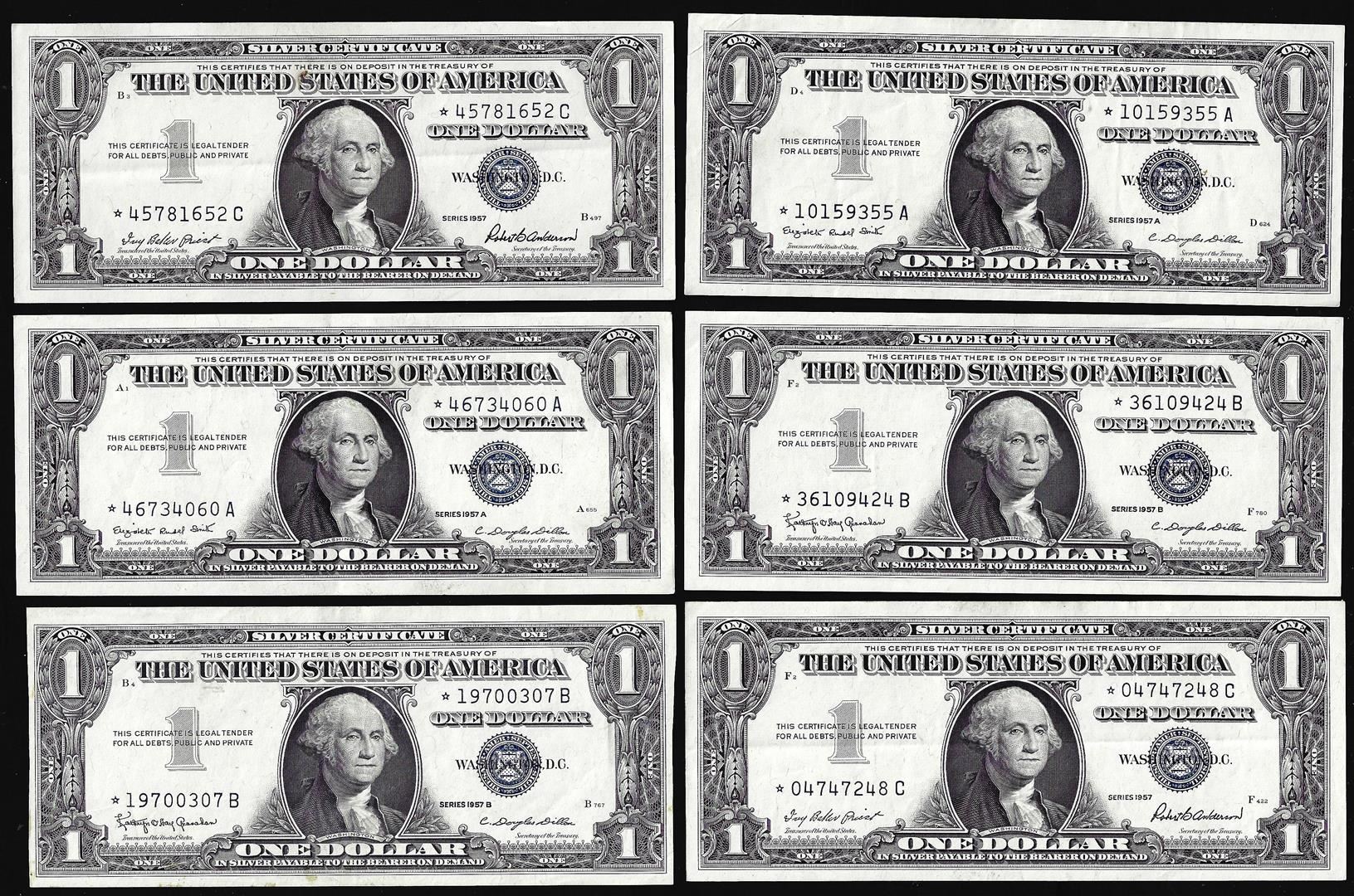One Lot of (6) 1957/A/B $1 Silver Certificate Star Notes.
