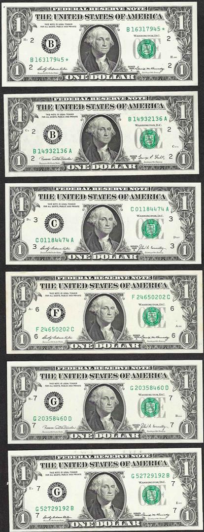 One Lot of (6) 1969 $1 Federal Reserve Notes.