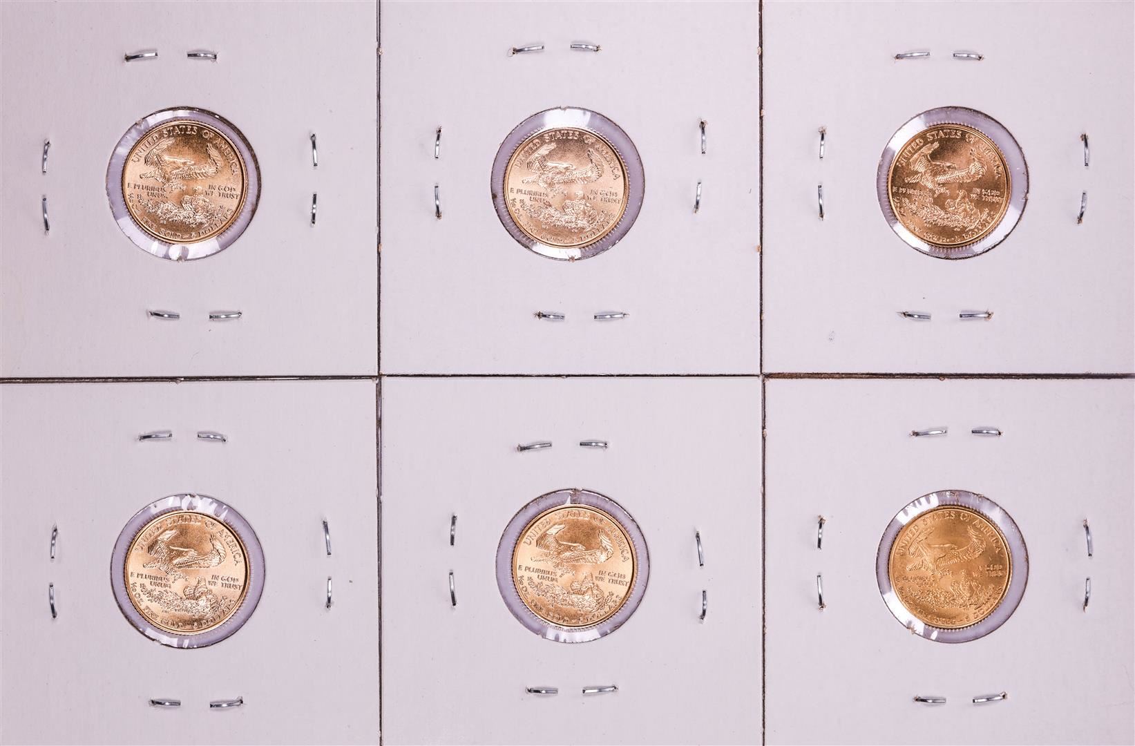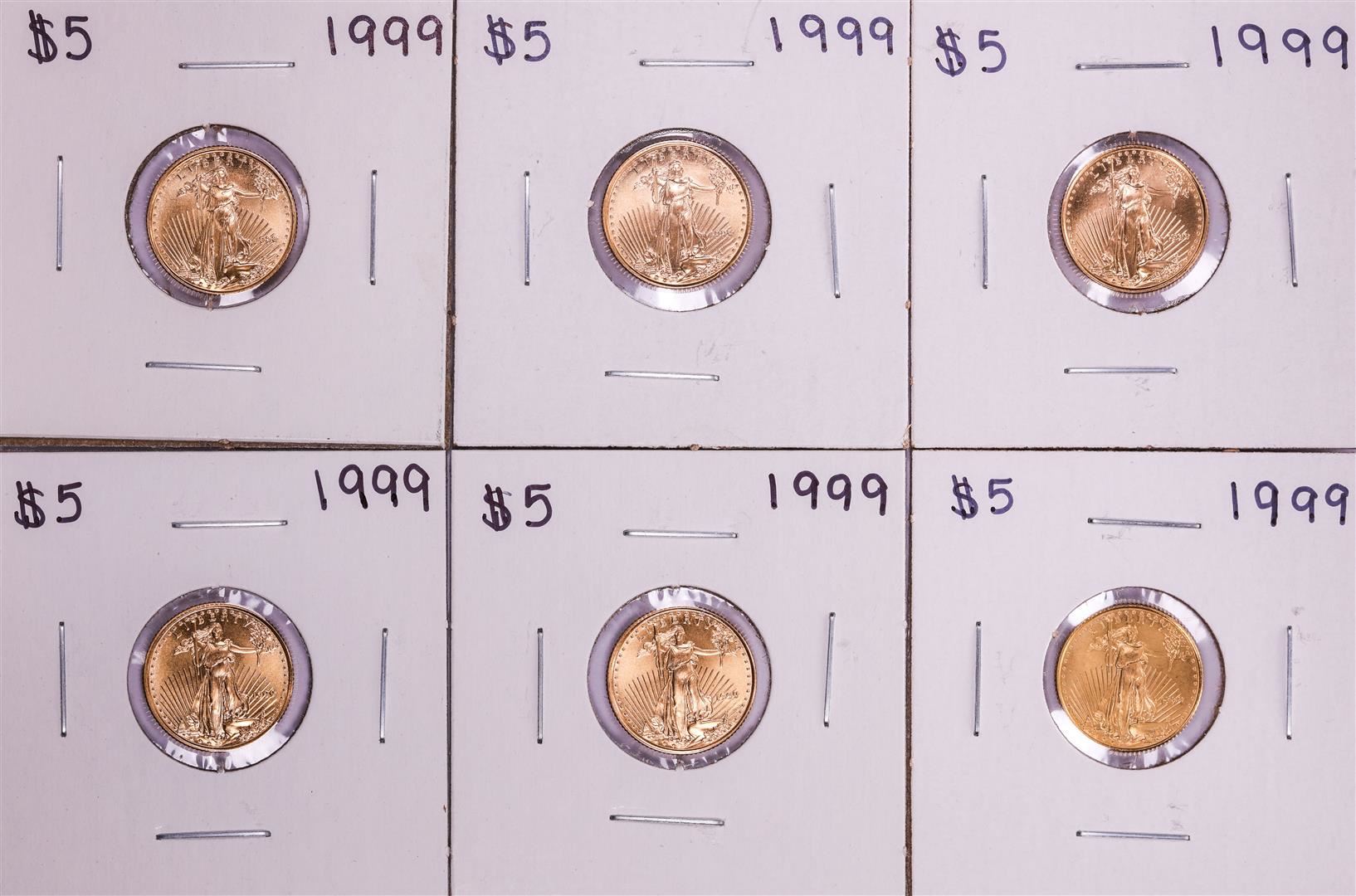 One Lot of (6) 1999 $5 American Gold Eagle Coins.
