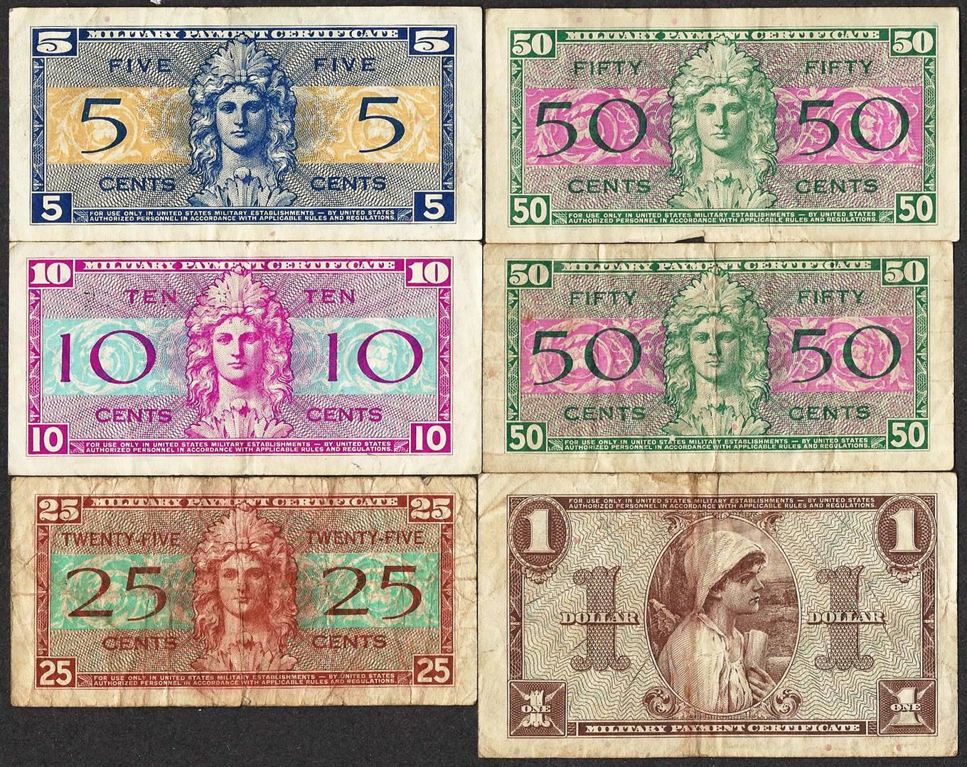 One Lot of (6) Series 521 Military Payment Certificate Notes.