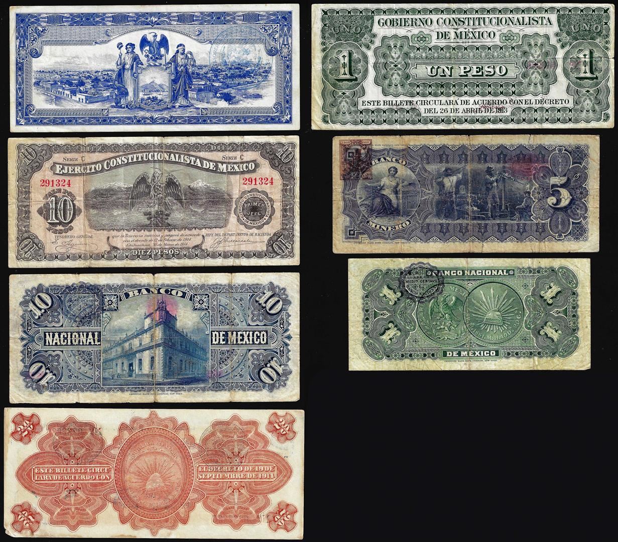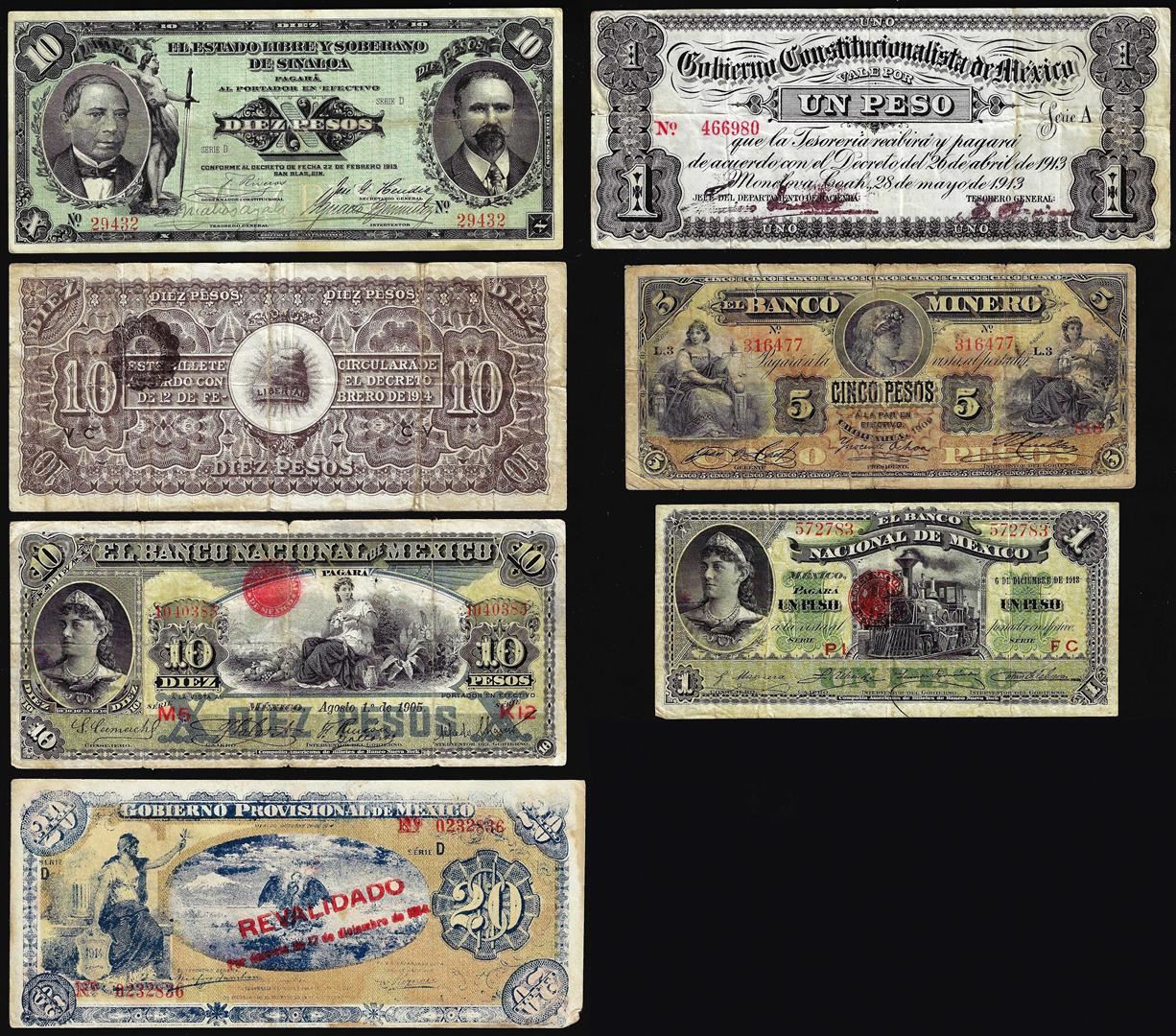 One Lot of (7)Assorted Mexican Revolution Currency Notes.