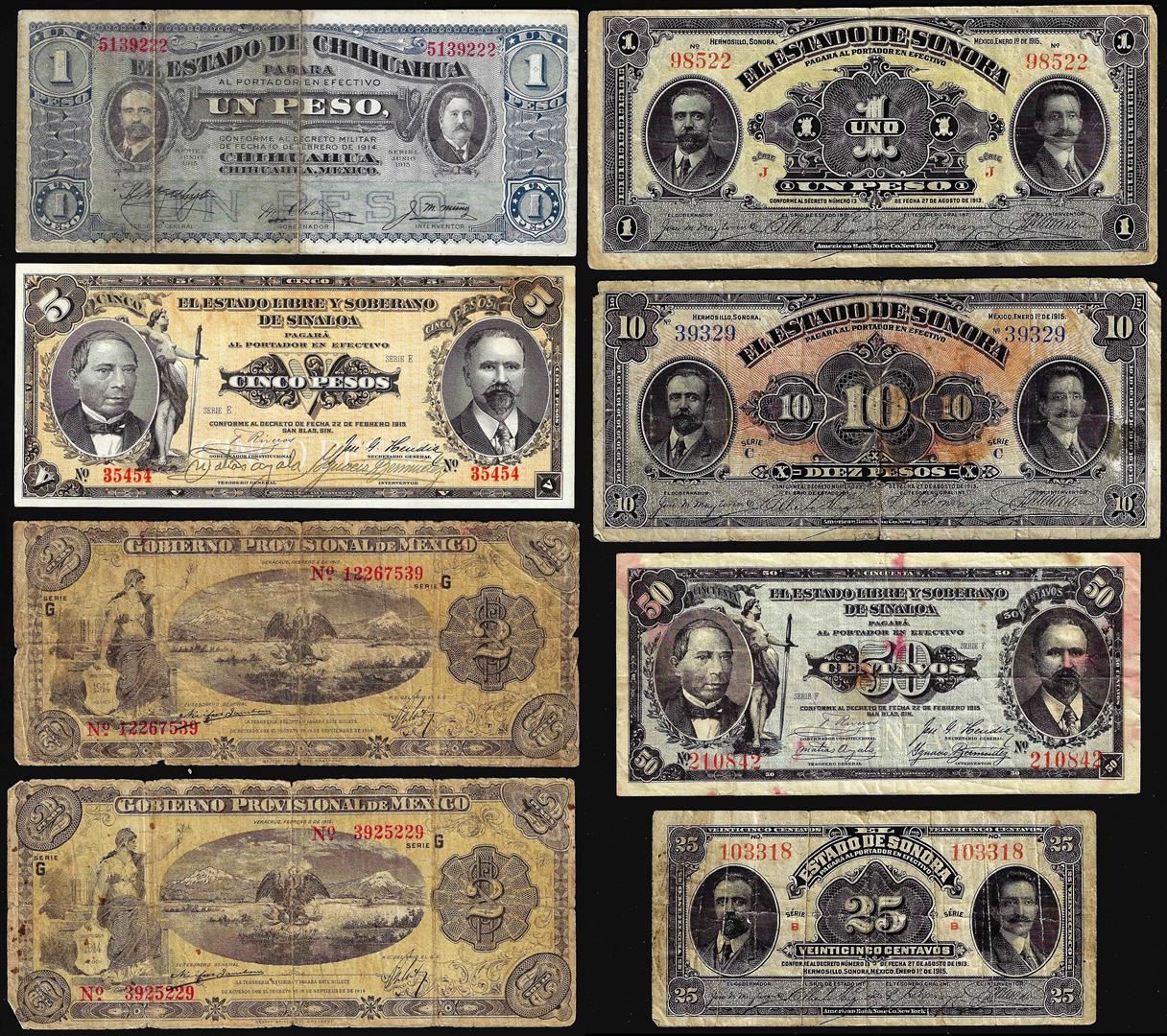 One Lot of (7)Assorted Mexican Revolution Currency Notes.