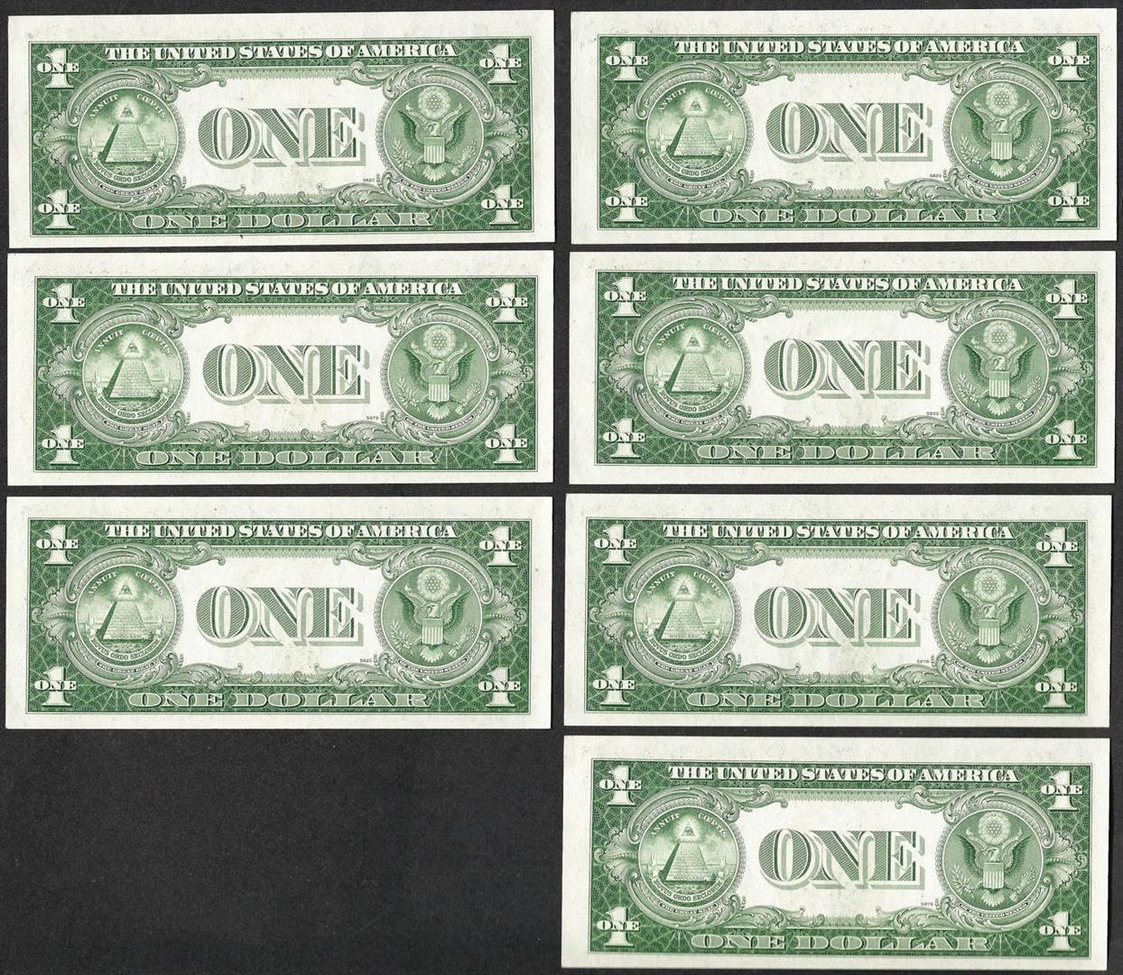 One Lot of (7) Consecutive 1935E $1 Silver Certificate Notes.