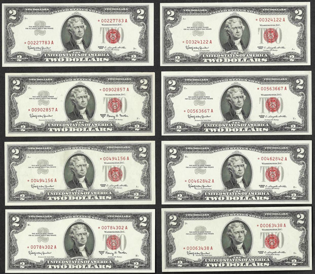 One Lot of (8) 1963 $2 Legal Tender STAR Notes.