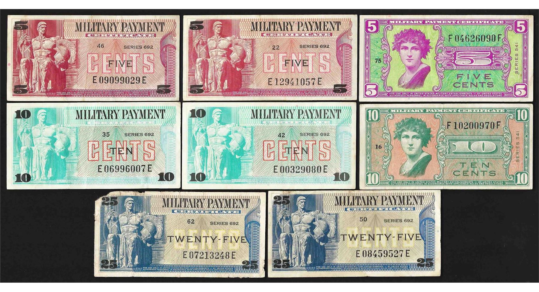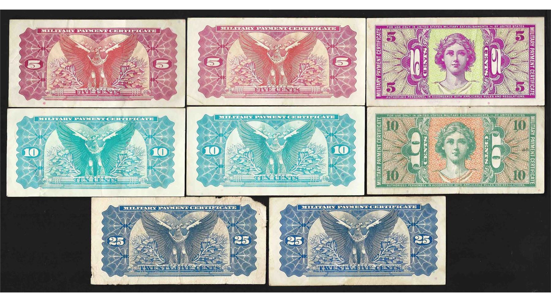 One Lot of (8) Assorted Military Payment Certificate Notes.