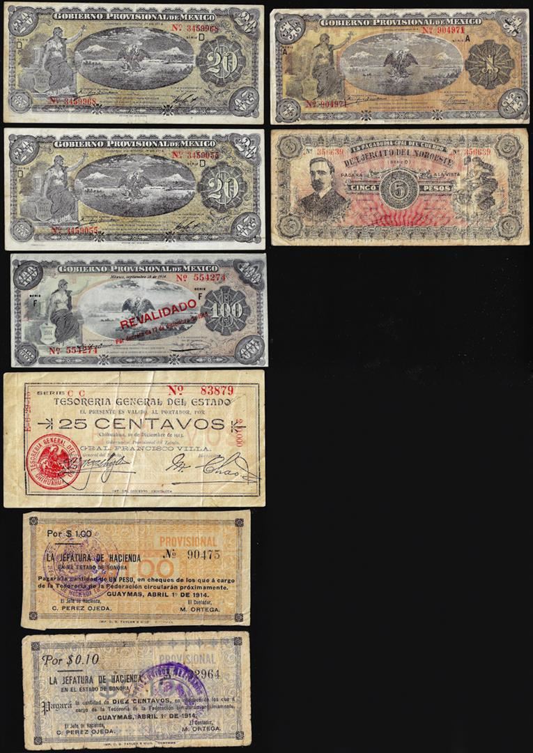 One Lot of (8) Mexico Revolutionary Mixed Notes.