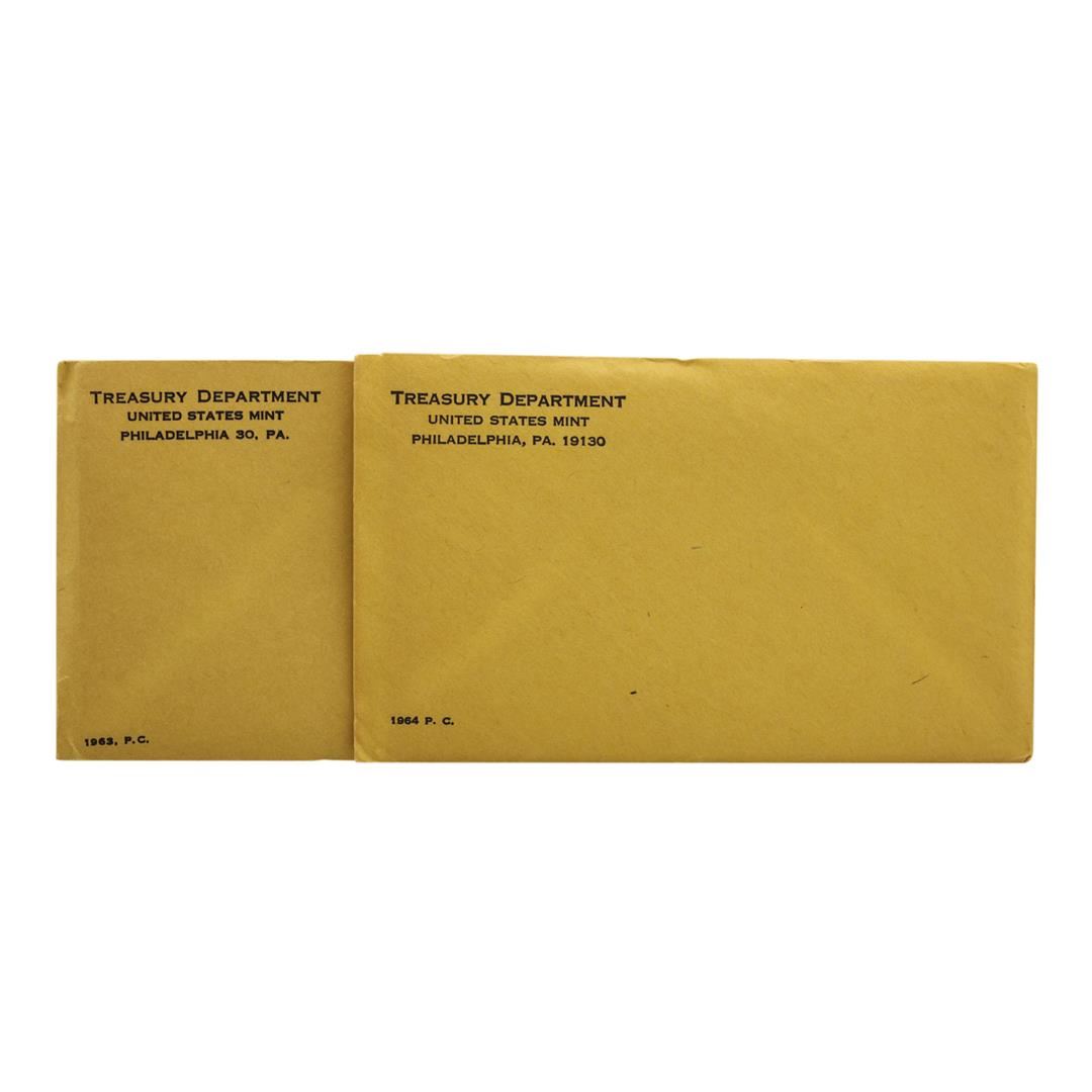 One Lot of Original 1963-1964 (5) Coin Proof Sets Unopened.