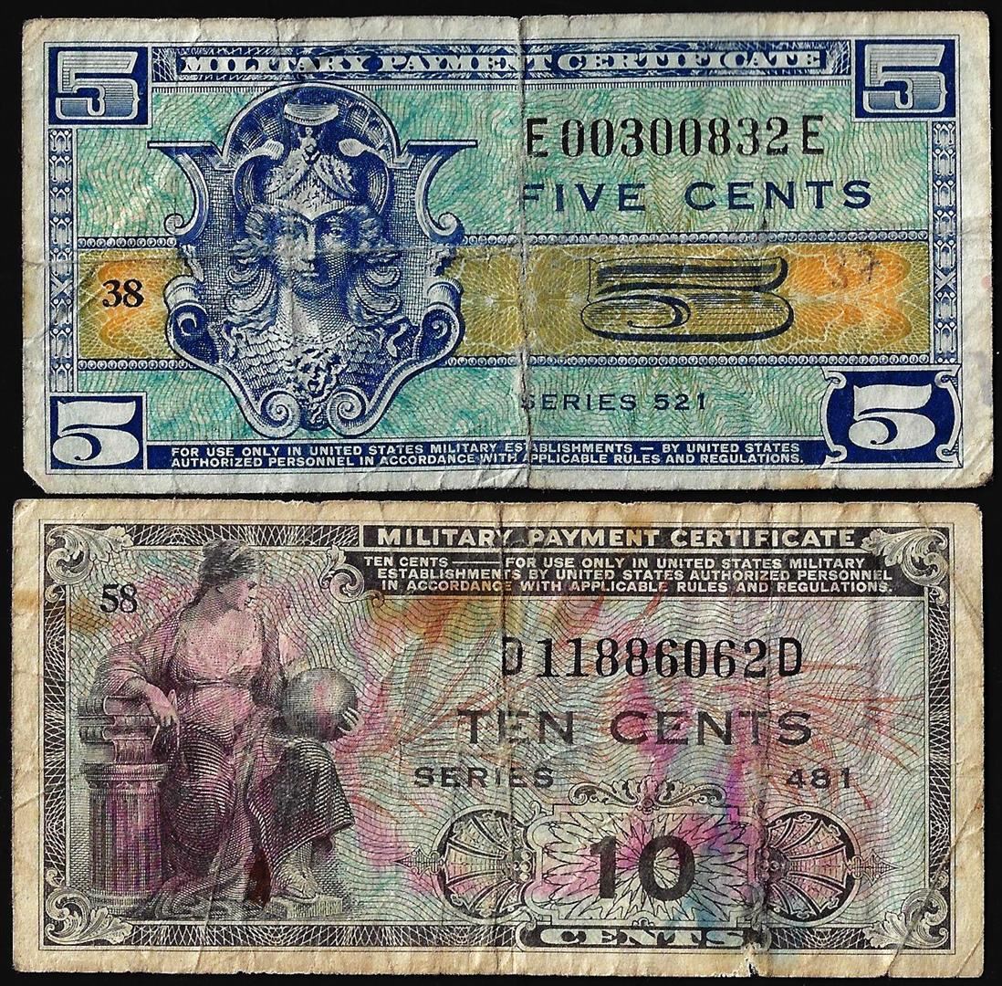 Lot of Series 521 5C & Series 481 10C Military Payment Certificates