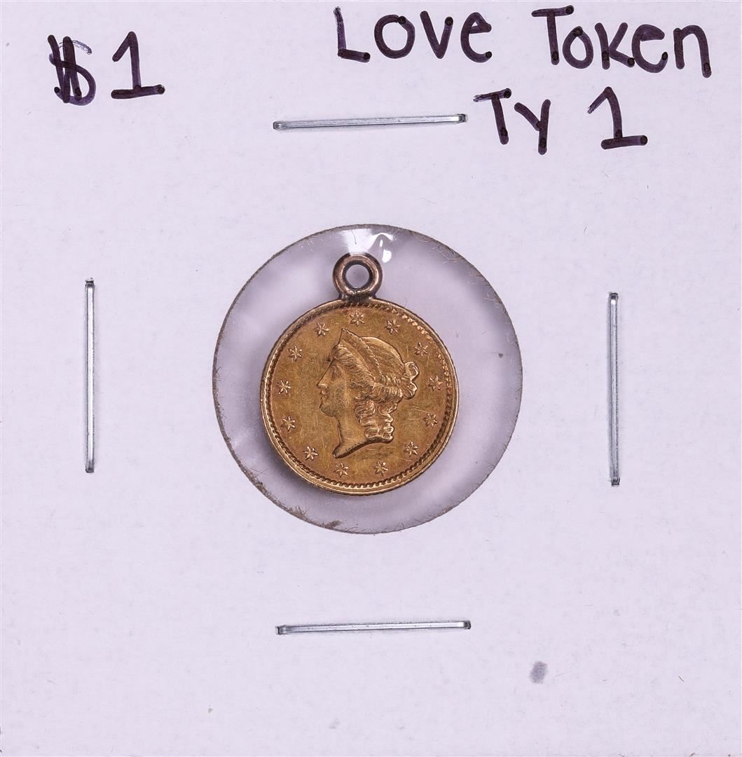 Love Token Type 1 Liberty Head Gold Dollar Coin in Bezel