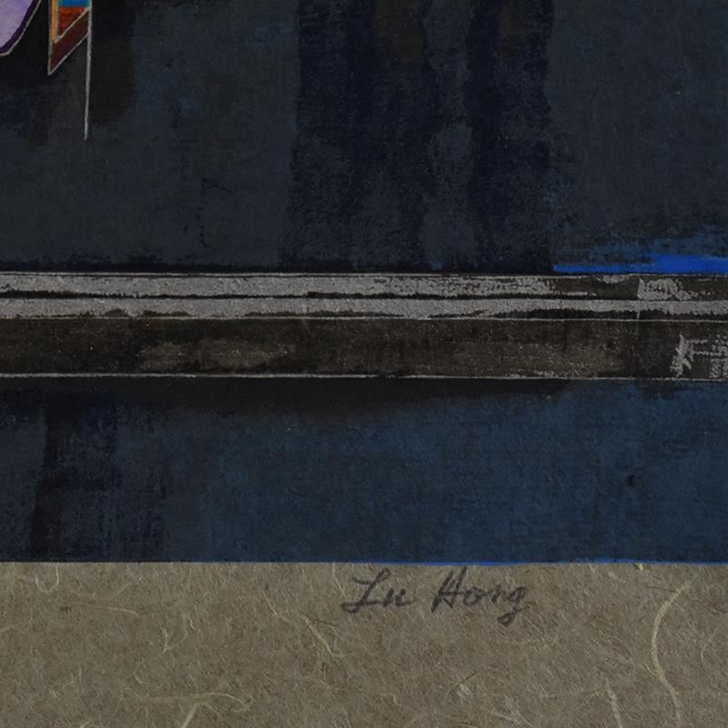 "Full Moon and Water" is a limited edition serigraph on rice paper by Lu Hong, numbered and hand signed by the artist. Includes Letter of Authenticity. Measures approx. 32" x 38" (with border), 29" x 29" (image).