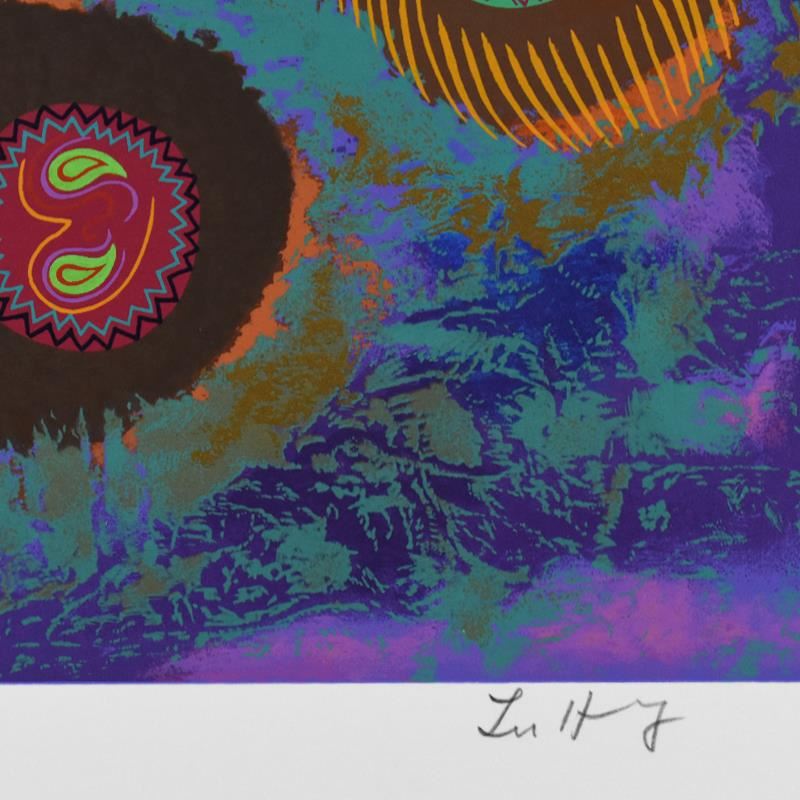 "Kitty Camp Playmates (White)" is a limited edition serigraph on paper by Lu Hong, numbered and hand signed by the artist. Includes Letter of Authenticity. Measures approx. 24" x 24.5" (with border), 20" x 20" (image).