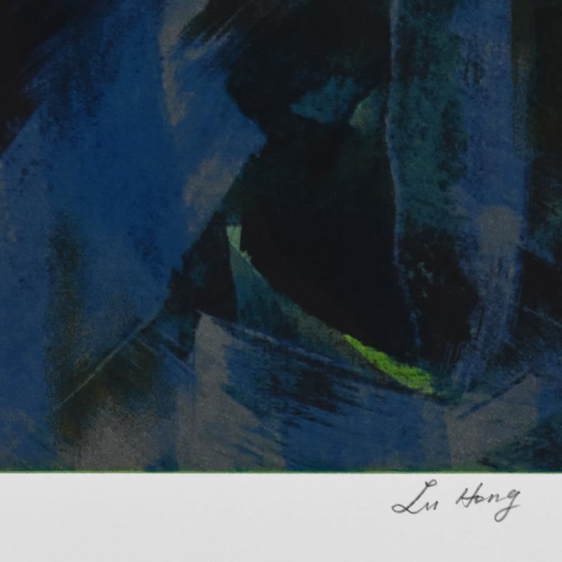 "Lotus" is a limited edition serigraph on paper by Lu Hong, numbered and hand signed by the artist. Includes Letter of Authenticity. Measures approx. 38" x 37.5" (with border), 33" x 32" (image).
