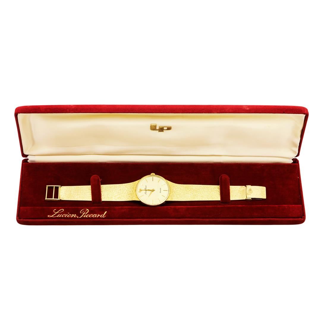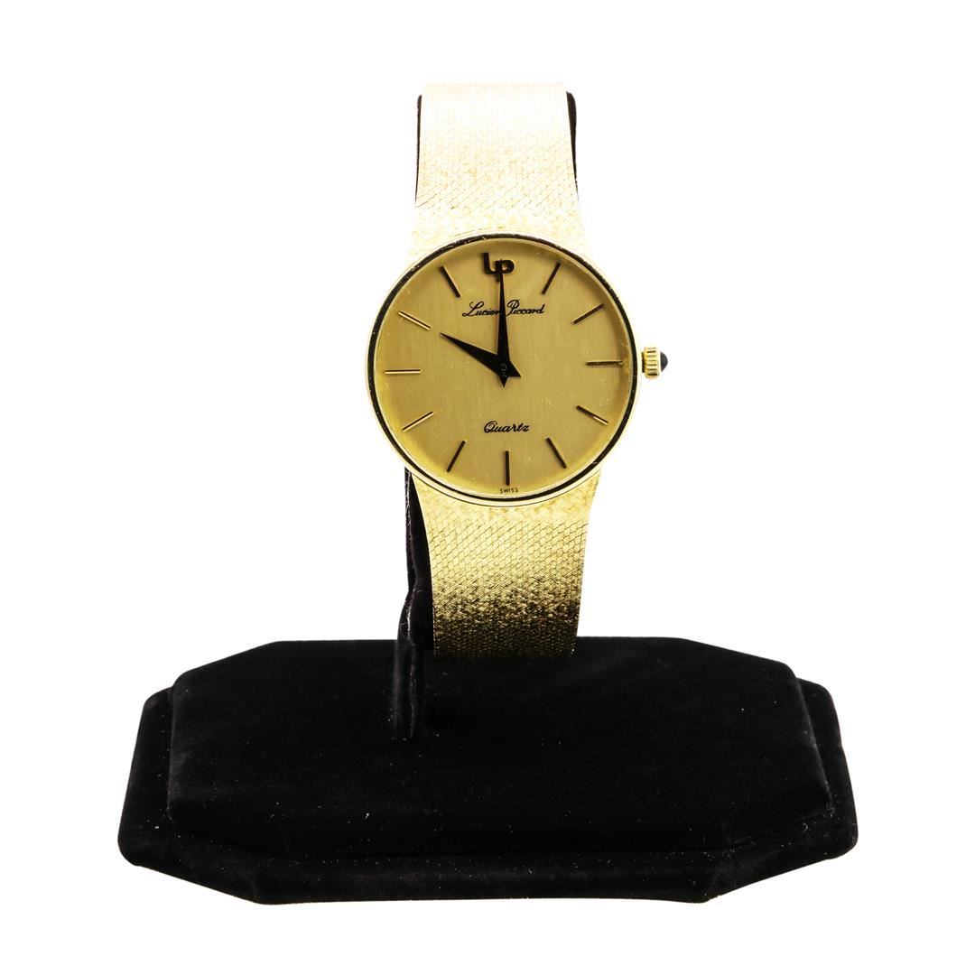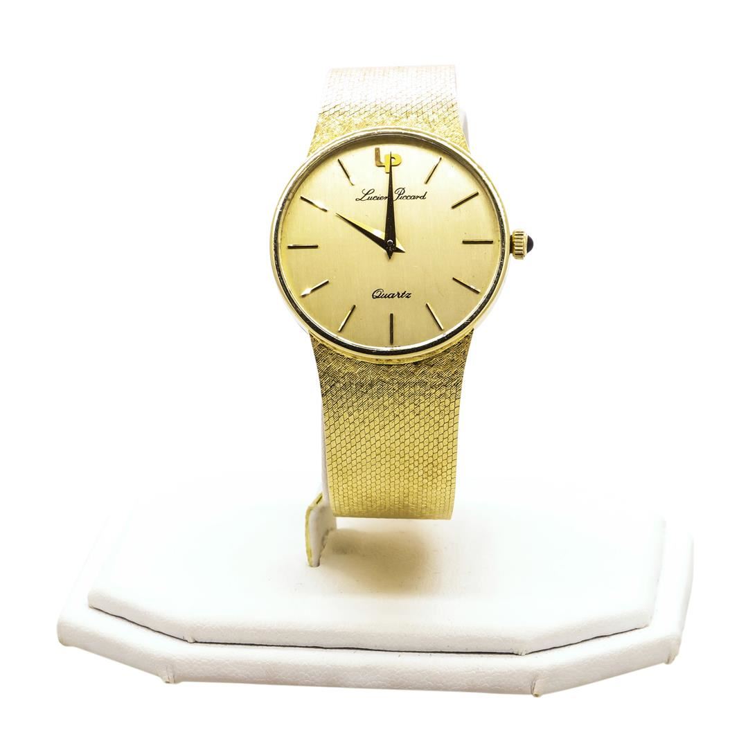 One Lucien Piccard 14K Gold Quartz Wristwatch with Box, the total weight of the watch including the movement is 49.06 grams.
