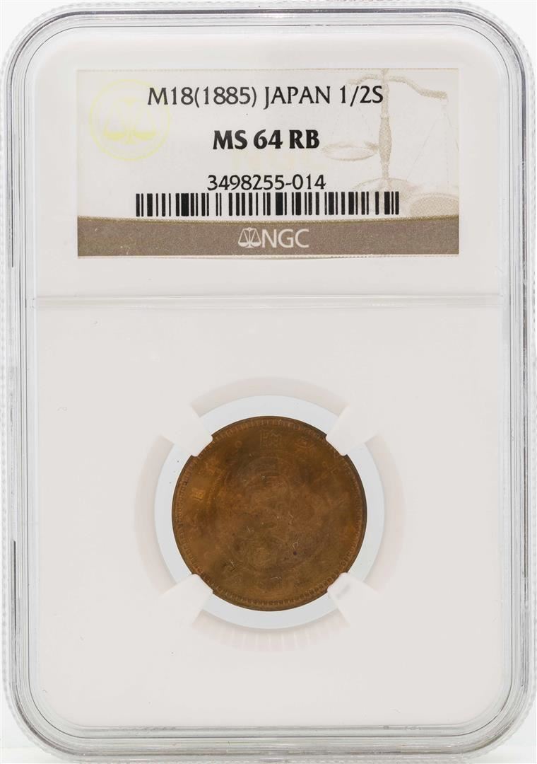 One M18(1885) Japan 1/2 Sen Copper Coin NGC MS64RB. NGC Certified.