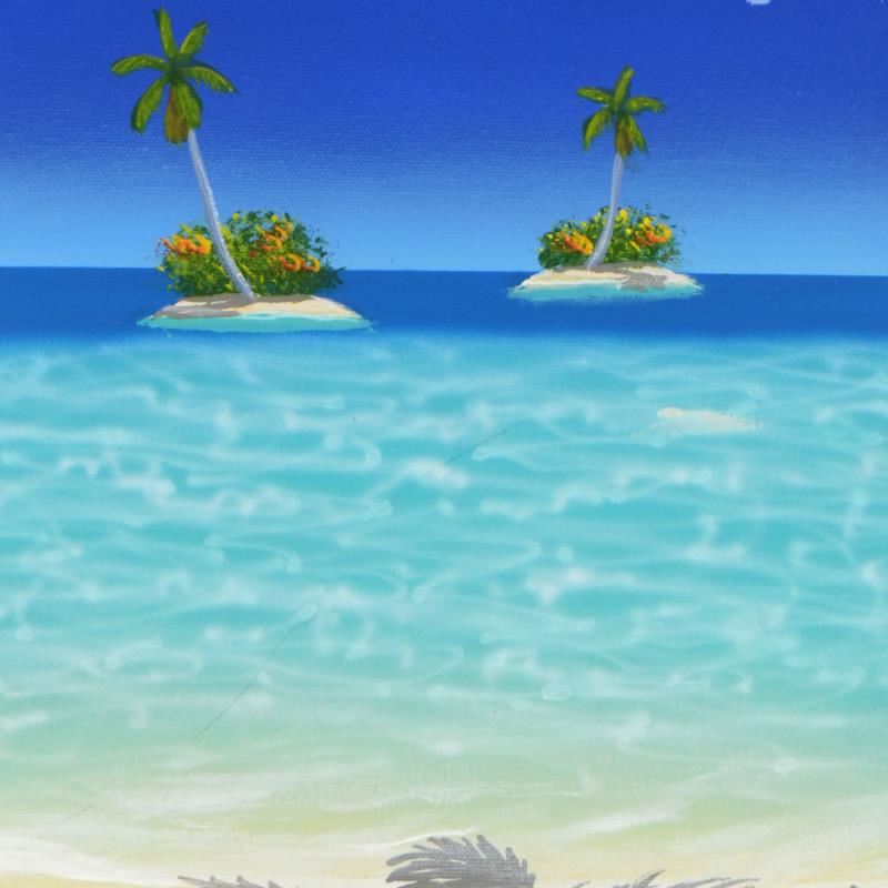 "Second Nature" is an original painting, oil on canvas, by Dan Mackin. Hand signed by the artist, this piece comes framed and with a letter of authenticity. There is a diagonal mark on the paint from the bottom left corner toward the center; reference the above close-up images. Measures approx. 19" x 16" (framed), 13.5" x 10.5" (image).