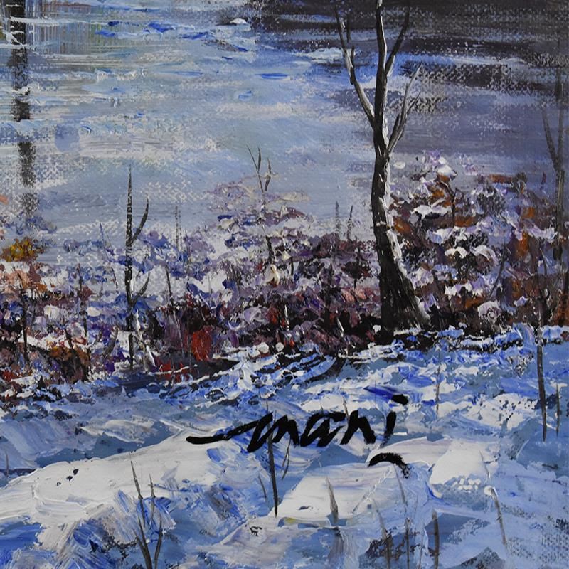 This is an original acrylic painting on canvas by Mani, hand signed by the artist. Includes Letter of Authenticity. Measures approx. 46" x 46" (image).