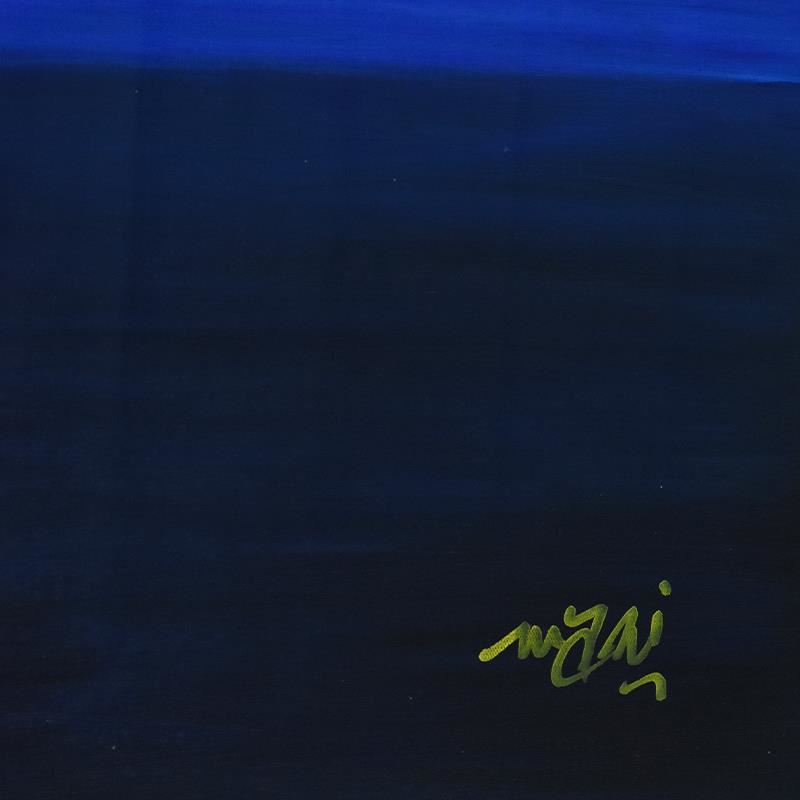 This is an original oil painting on canvas by Mani, hand signed by the artist. Includes Letter of Authenticity. Measures approx. 58" x 30" (image). Please note: There are faint horizontal creases on the canvas from being improperly rolled; these imperfections may be concealed when framed.