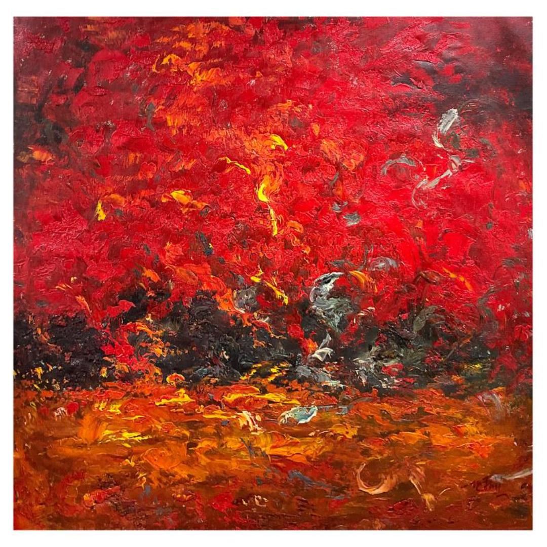 This is an original oil painting on canvas by Mani, hand signed by the artist. Includes Letter of Authenticity. Measures approx. 48" x 46" (image).