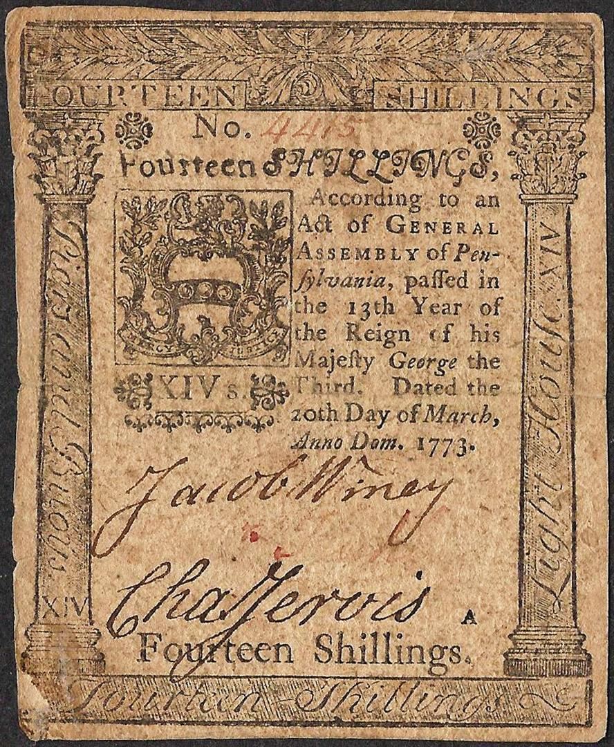 March 20, 1773 Pennsylvania Fourteen Shillings Colonial Currency Note
