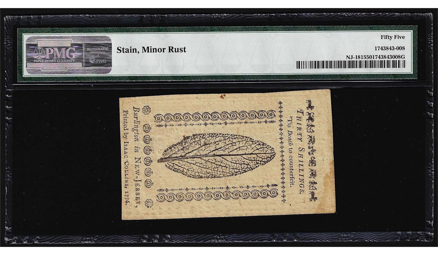March 25, 1776 New Jersey 30 Shillings Colonial Note PMG About Uncirculated 55