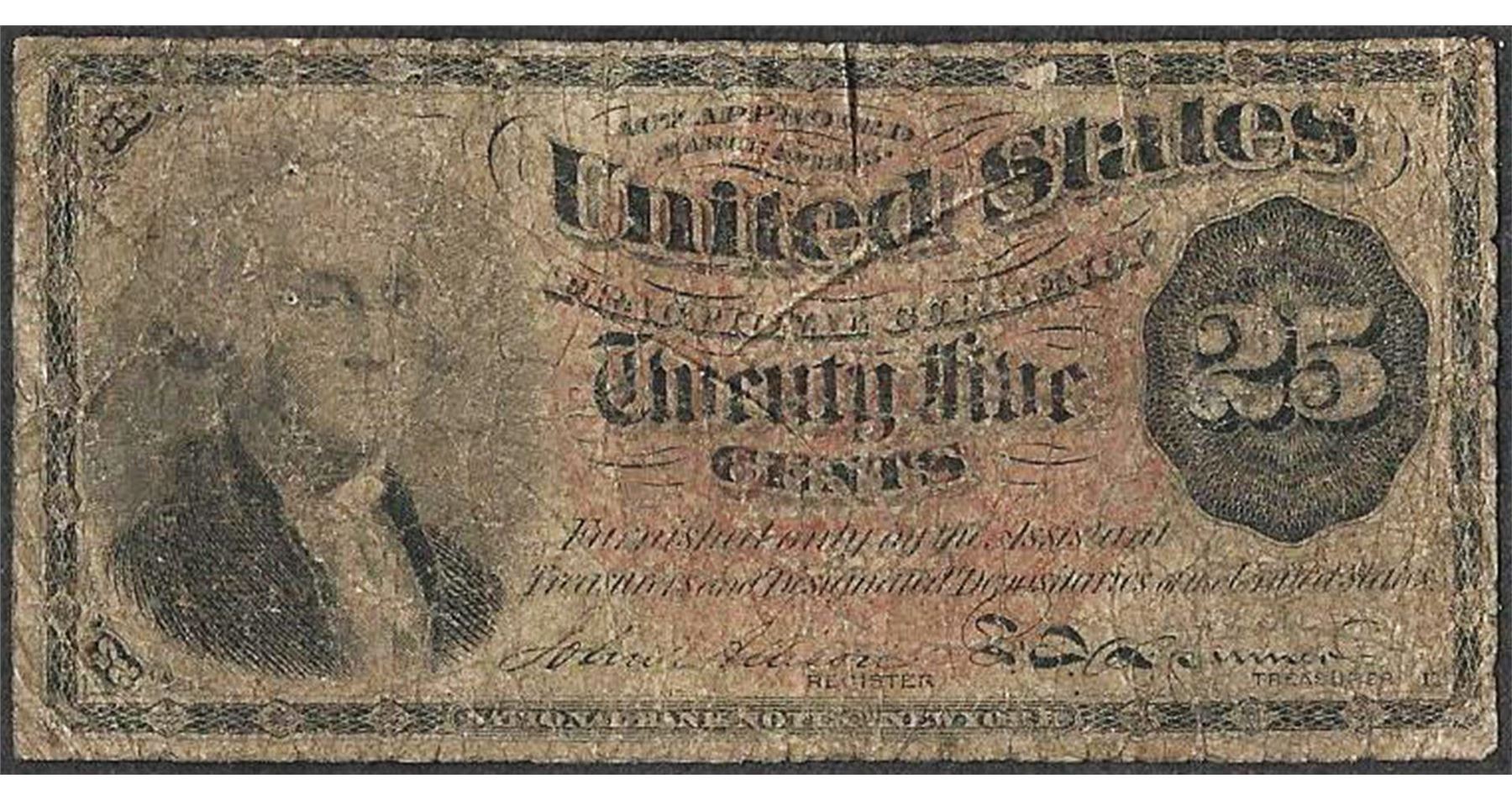 One March 3, 1862 Fourth Issue 25 Cent Fractional Currency Note.