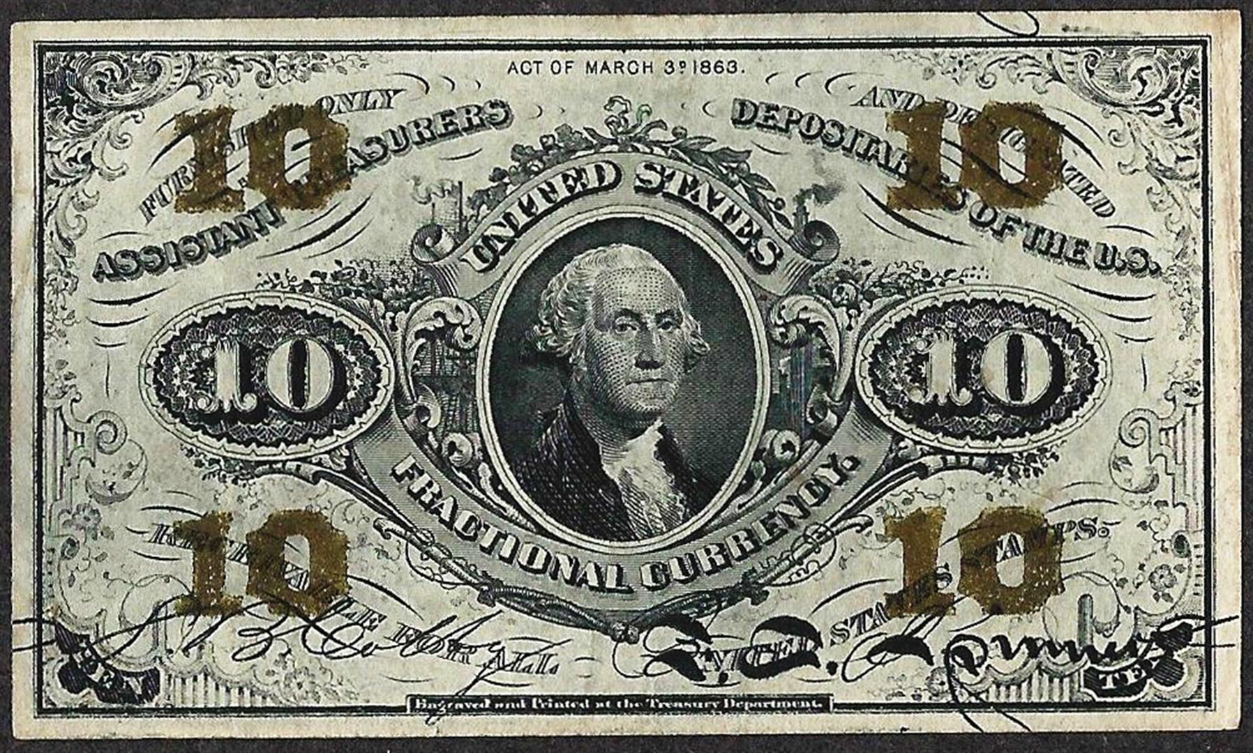 March 3, 1863 10 Cents Third Issue Fractional Currency Note