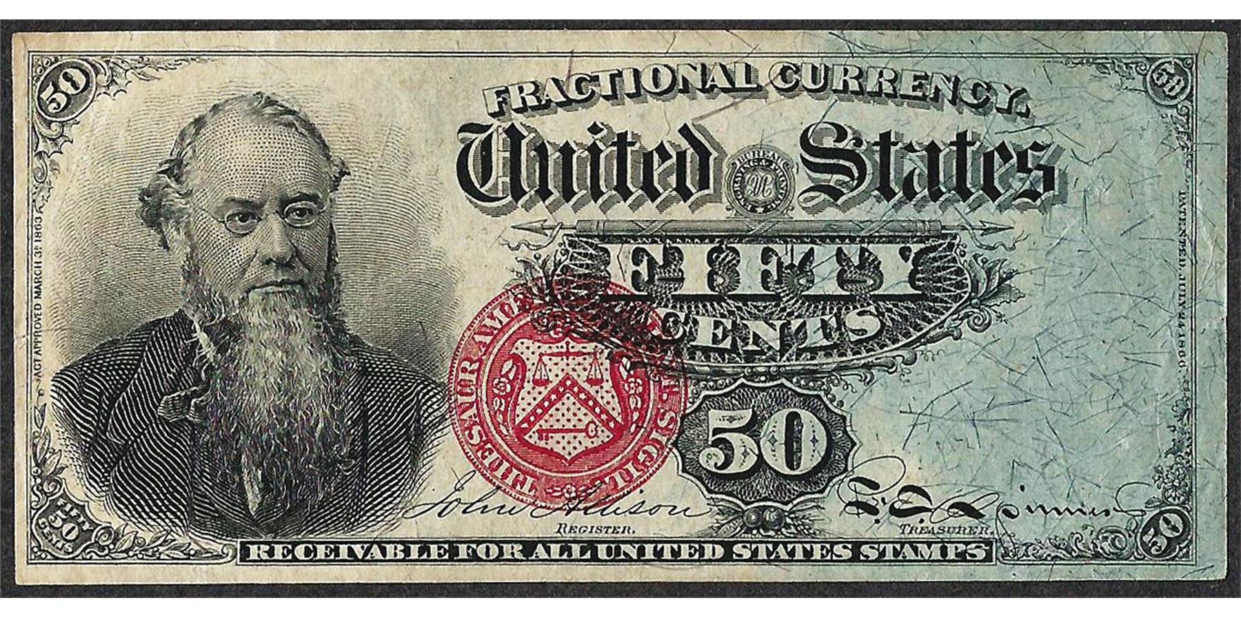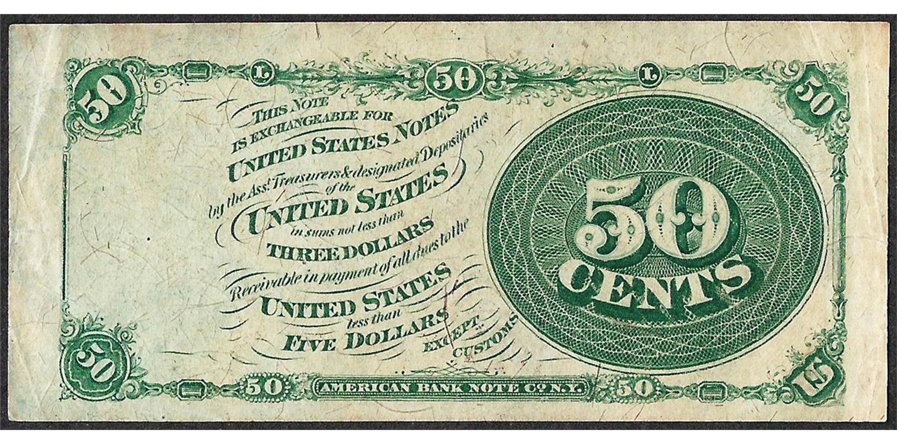 One March 3, 1863 50 Cents Fourth Issue Stanton Fractional Currency Note.