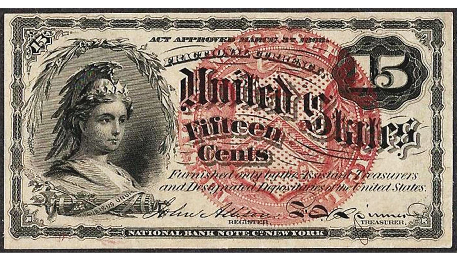 One March 3, 1863 Fifteen Cents Fourth Issue Fractional Currency Note.