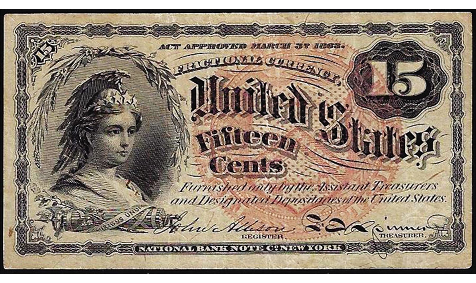 March 3, 1863 Fifteen Cents Fourth Issue Fractional Note