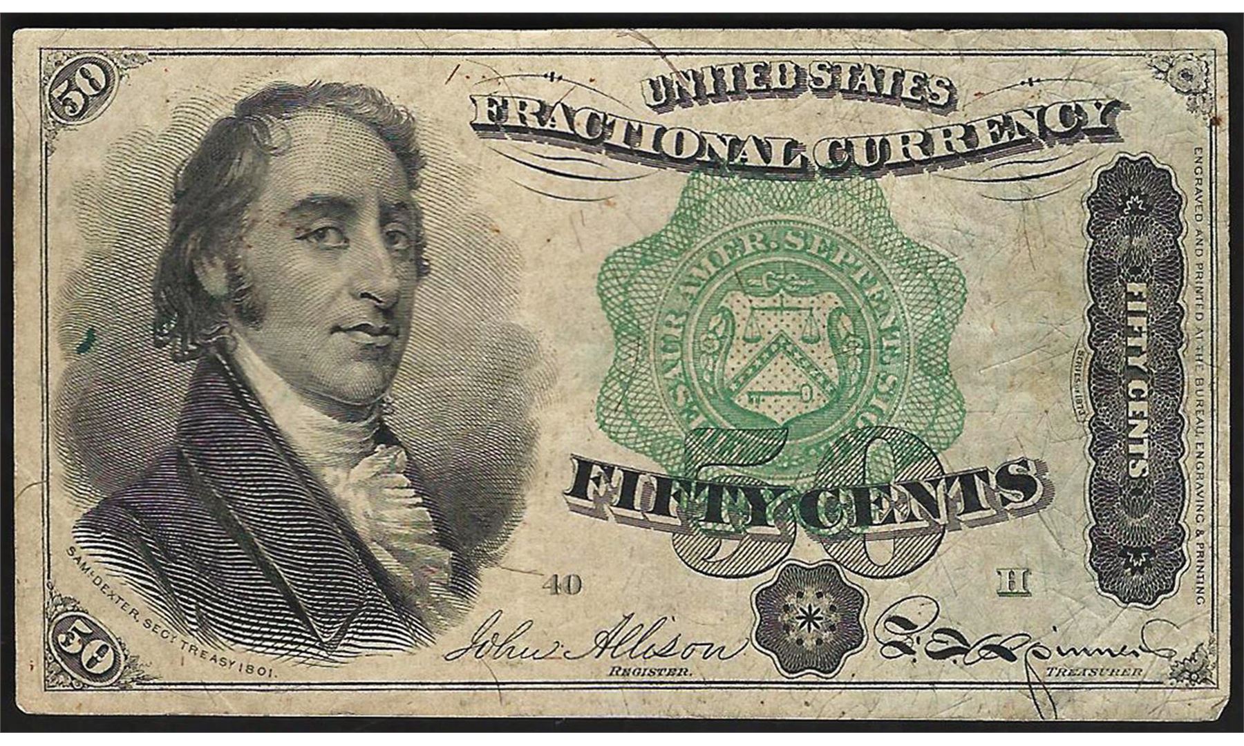One March 3, 1863 Fifty Cent 4th Issue Fractional Note.