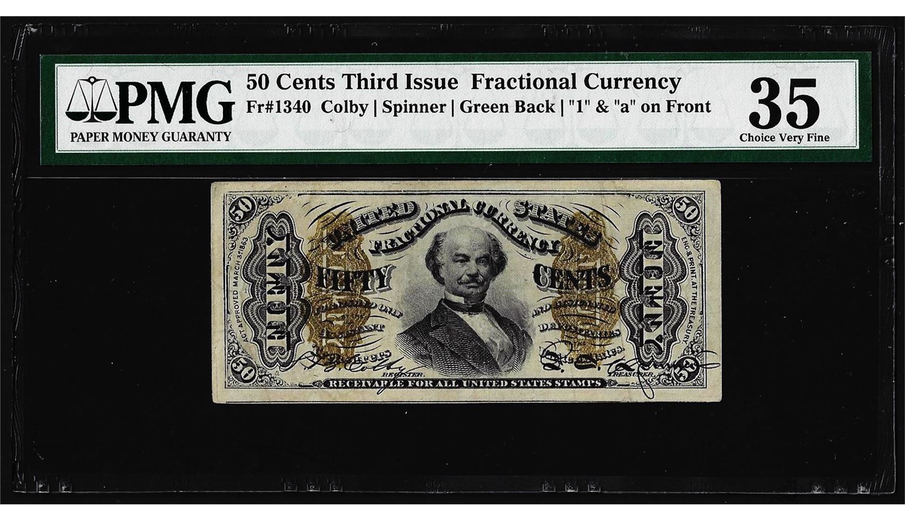 One March 3, 1863 Fifty Cent Third Issue Fractional Currency Note PMG Choice Very Fine 35. PMG Certified.