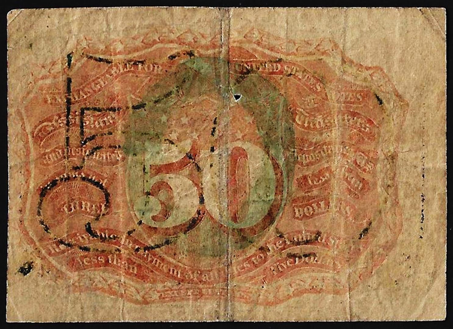 One March 3, 1863 Fifty Cents Second Issue Fractional Currency Note.