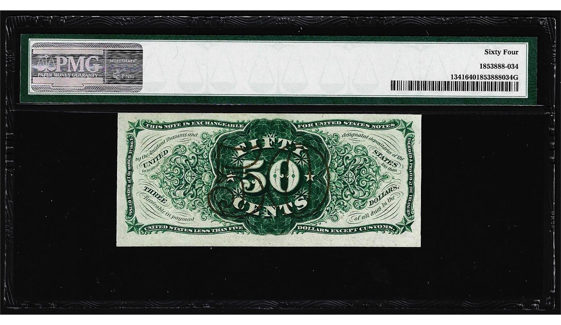 One March 3, 1863 Fifty Cents Third Issue Fractional Currency Note PMG Choice Unc. 64. PMG Certified.