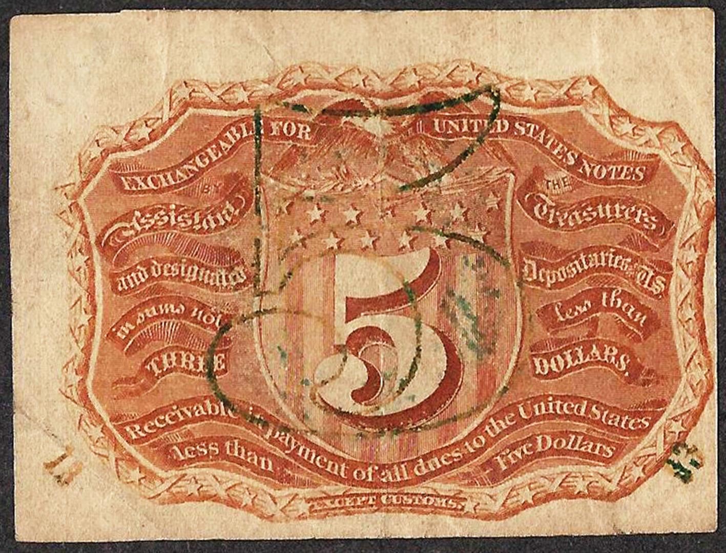 One March 3, 1863 Five Cent Second Issue Fractional Note.