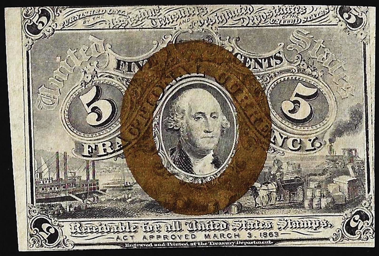 One March 3, 1863 Five Cents Second Issue Fractional Currency Note.