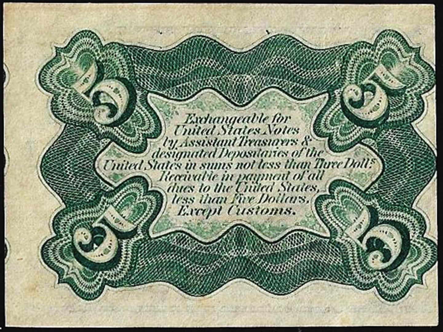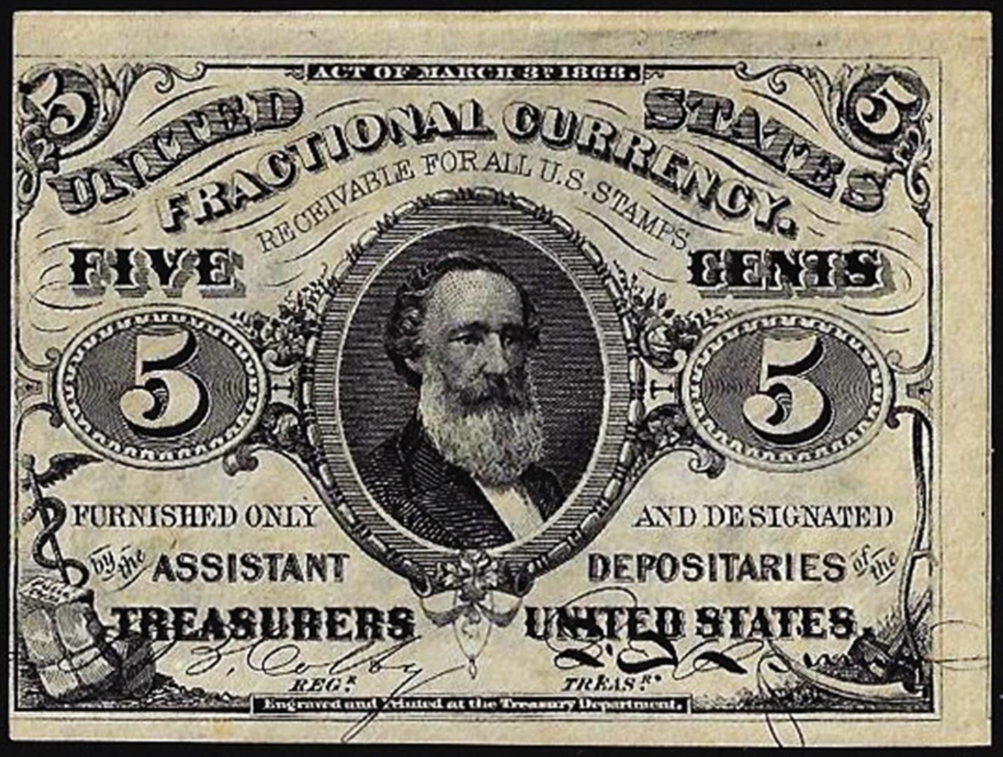 One March 3, 1863 Five Cents Third Issue Fractional Currency Note.