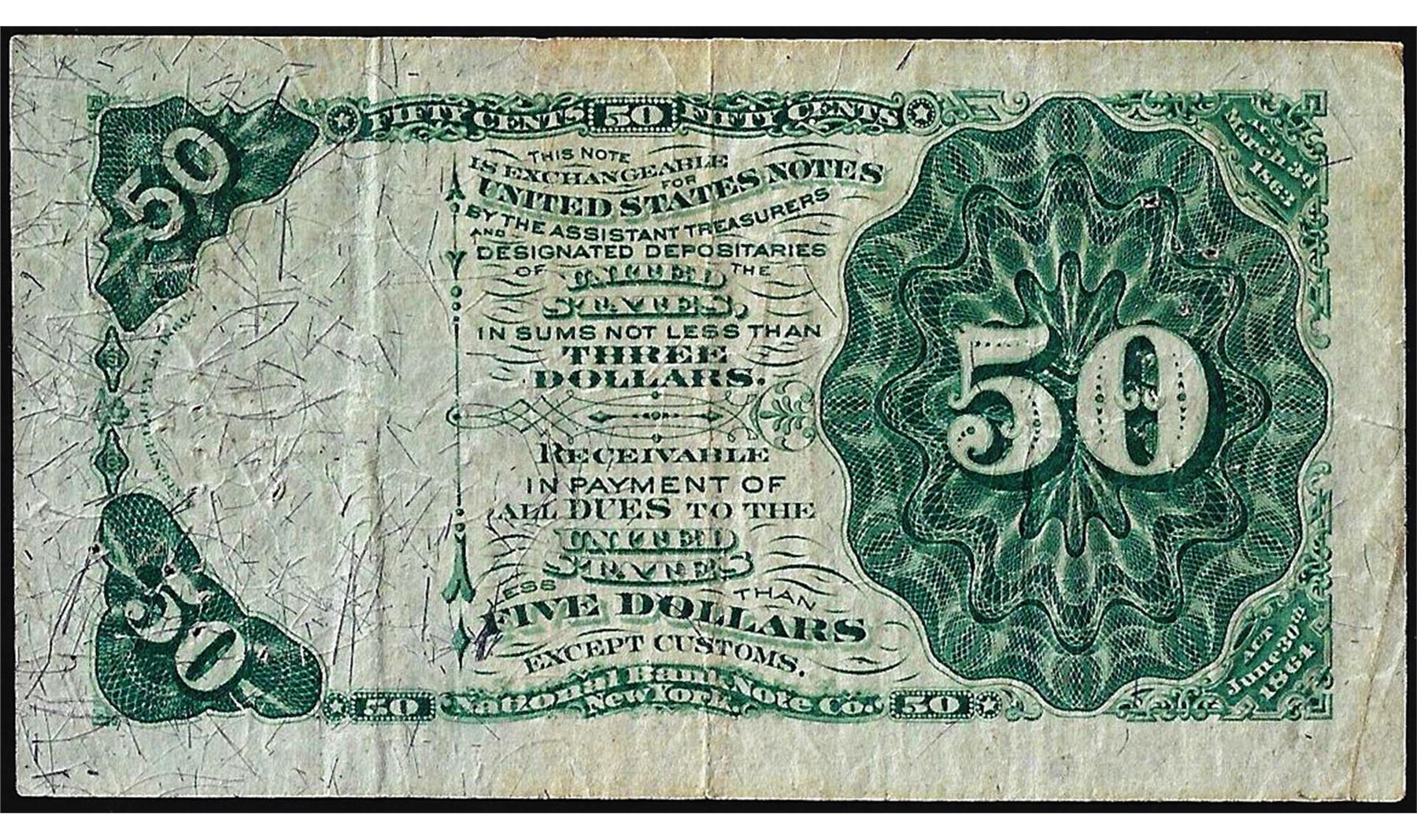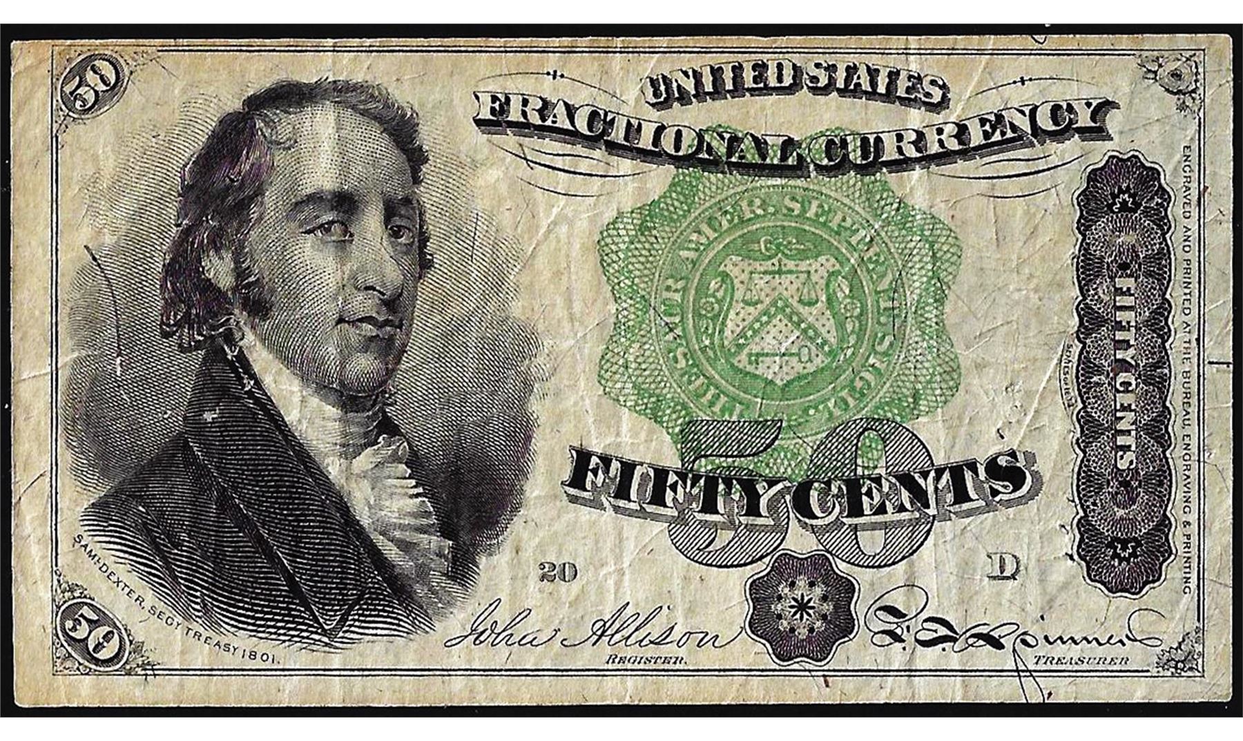 One March 3, 1863 Fourth Issue Fifty Cents Fractional Currency Note.