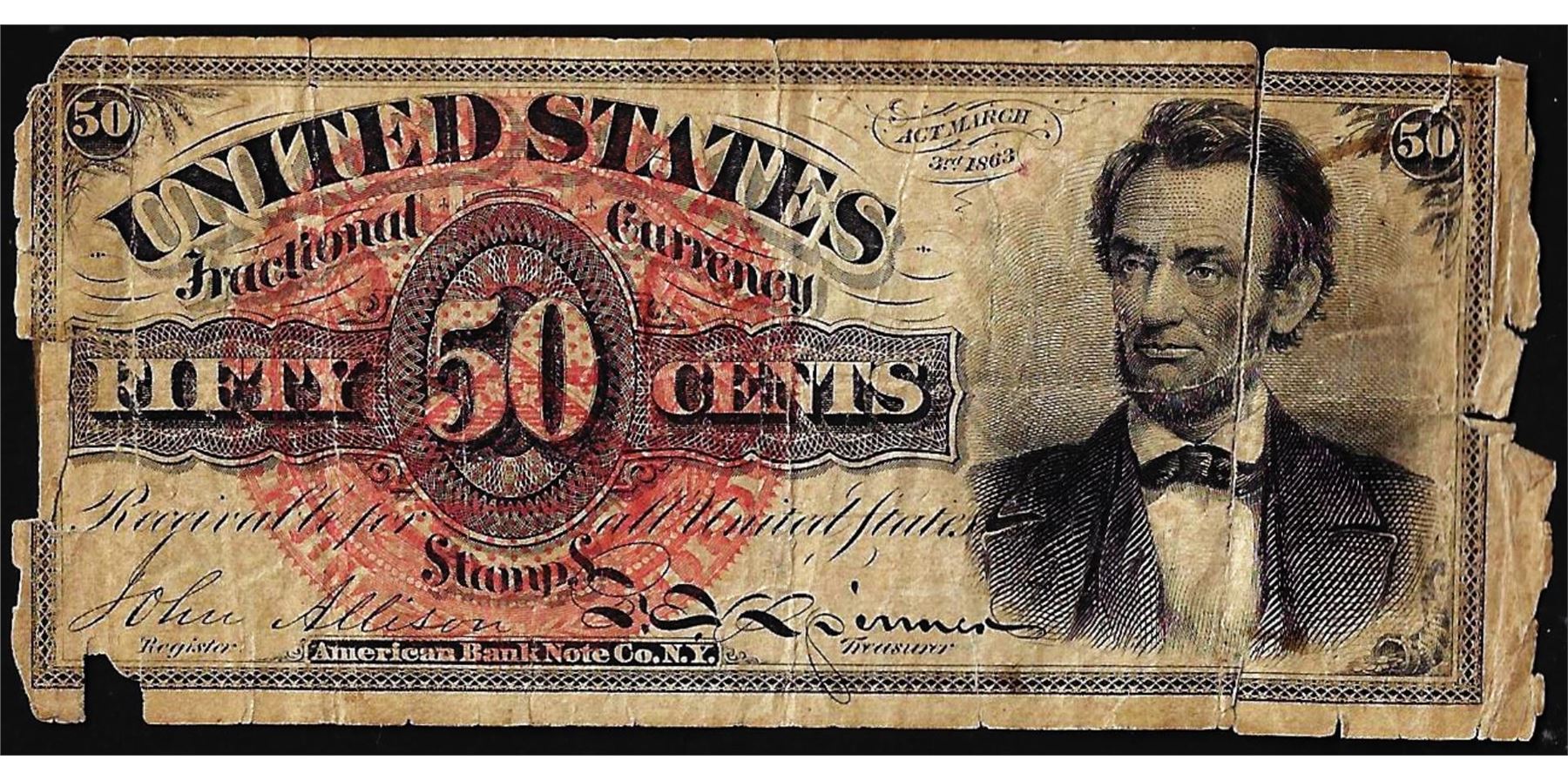 One March 3, 1863 Fourth Issue Fifty Cents Lincoln Fractional Note.