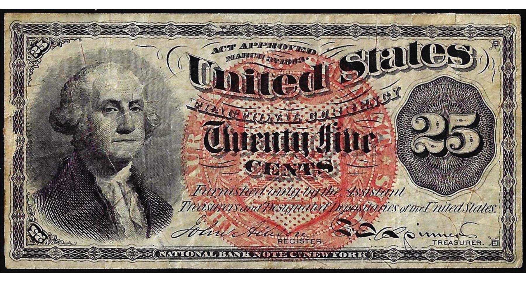 One March 3, 1863 Fourth Issue Twenty-Five Cents Fractional Currency Note.