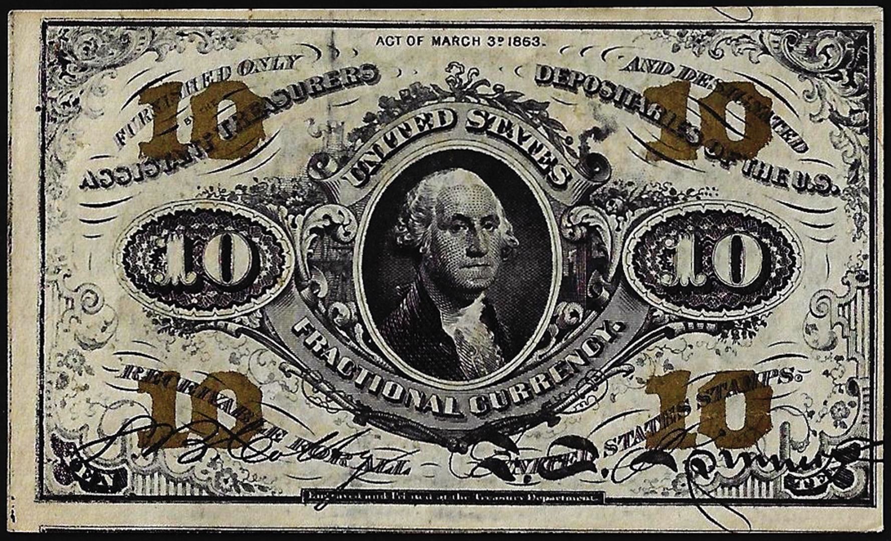 One March 3, 1863 Second Issue 10 Cent Fractional Currency Note.