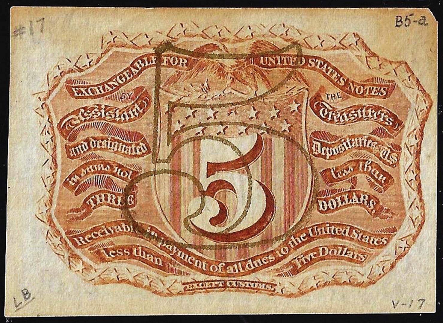 One March 3, 1863 Second Issue Five Cent Fractional Currency Note.