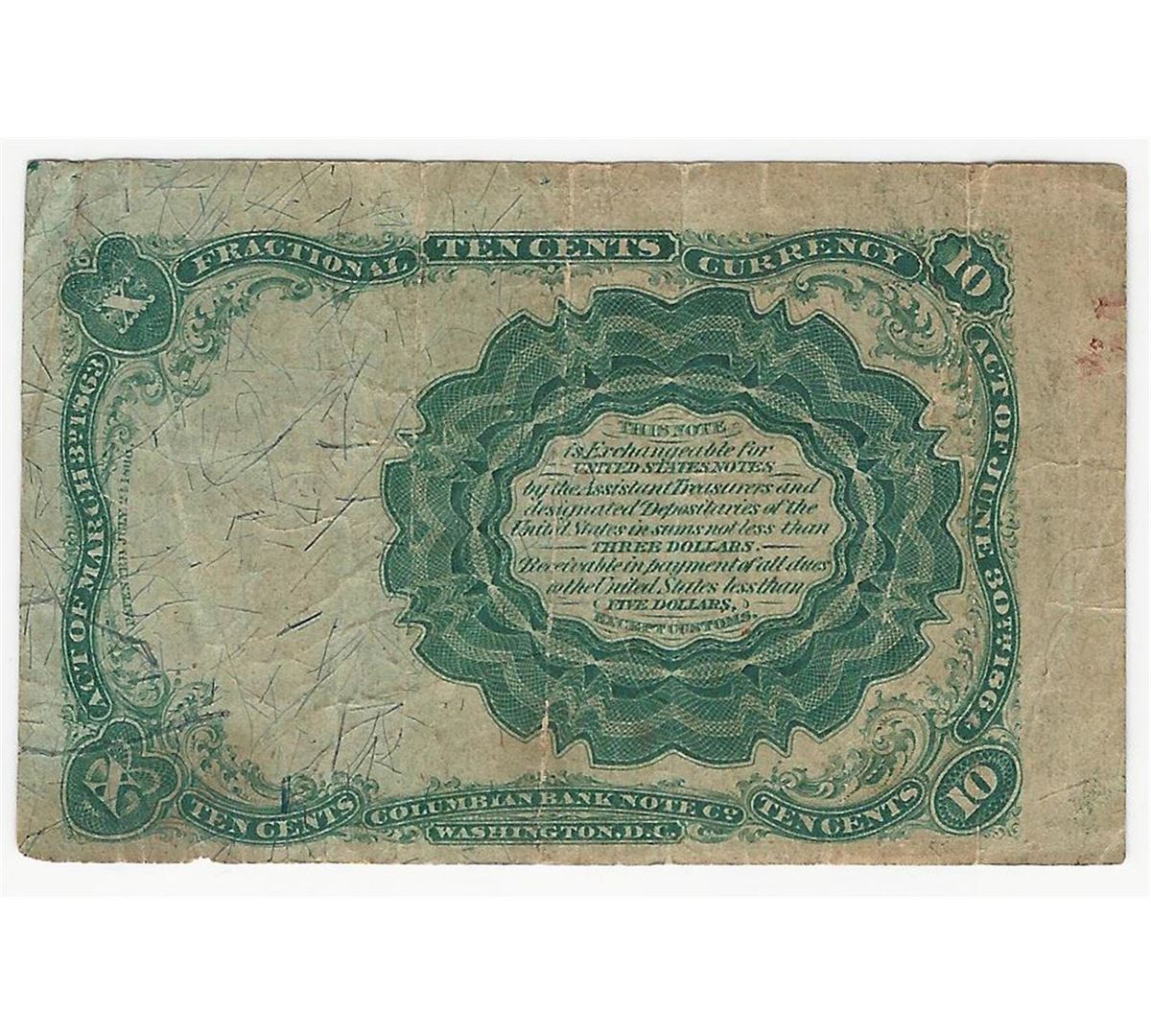 One March 3, 1863 Ten Cent Fifth Issue Fractional Note.