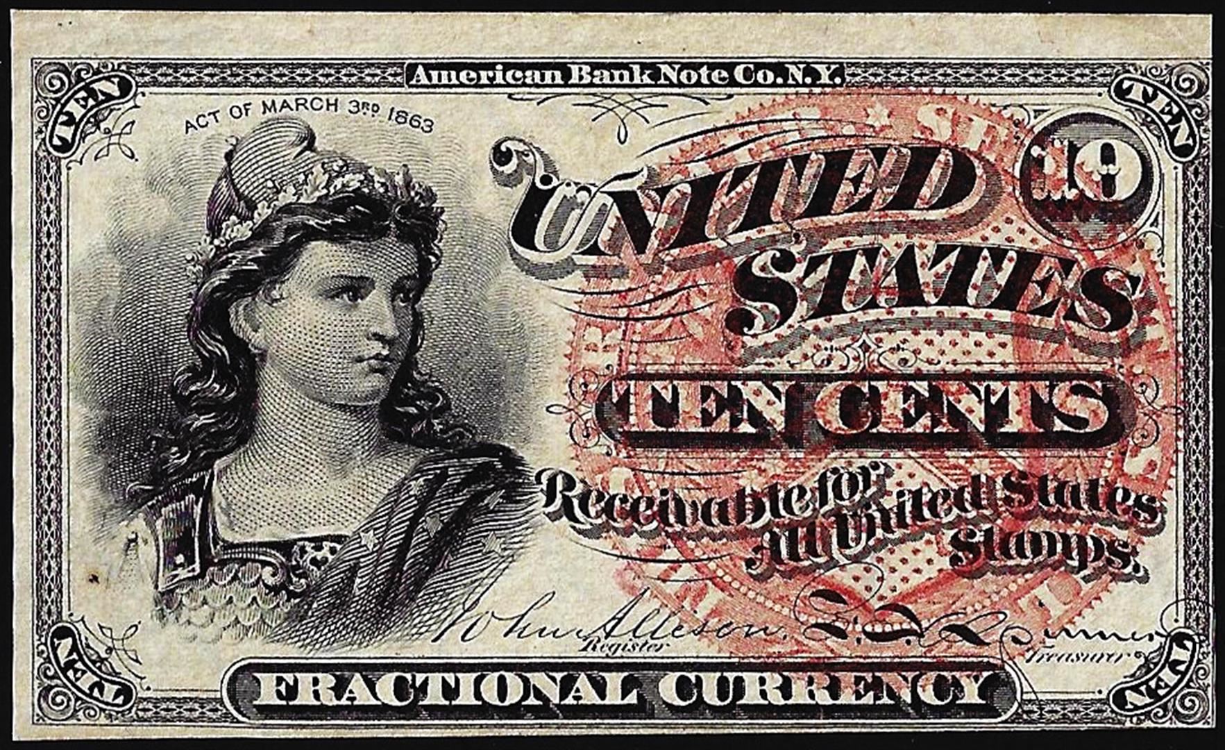 One March 3, 1863 Ten Cents Fourth Issue Fractional Currency Note.
