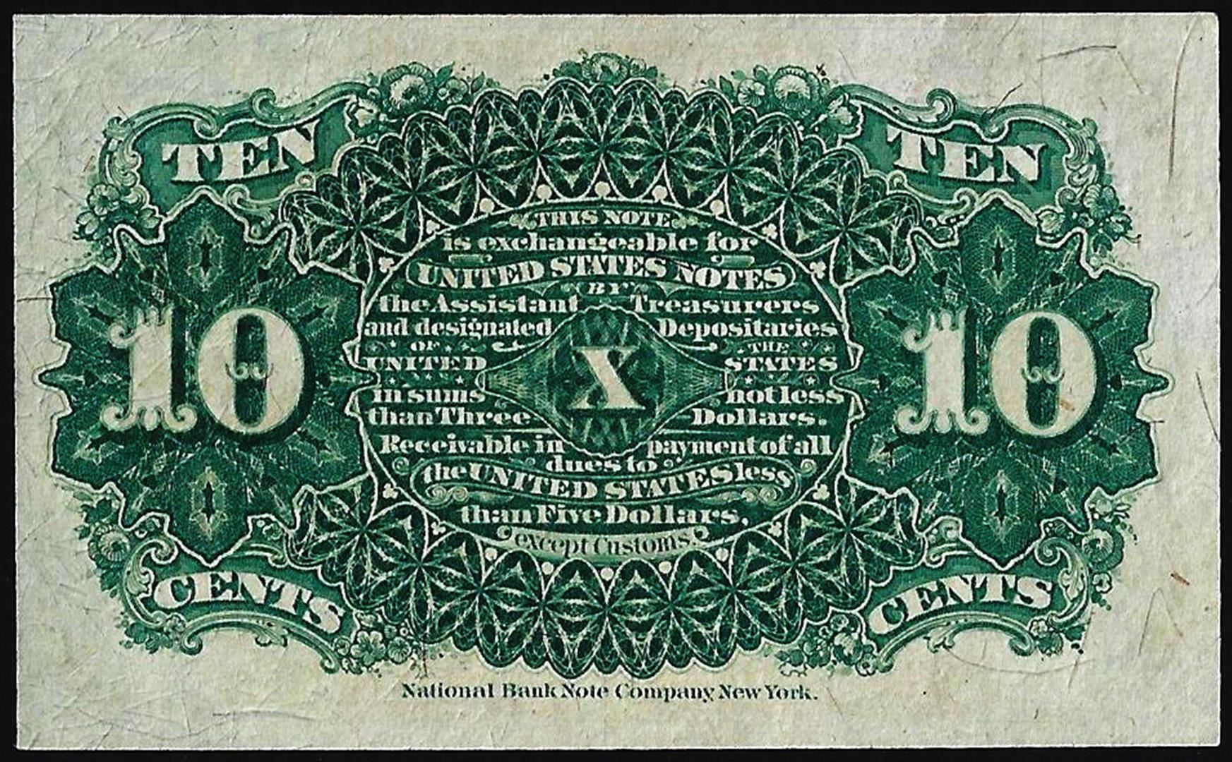 One March 3, 1863 Ten Cents Fourth Issue Fractional Currency Note.